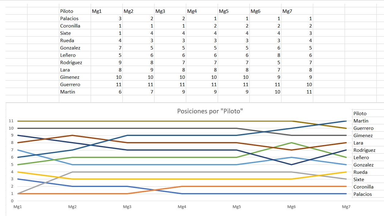 Como comentaba al principio pronto se fué adivinando la clasificación, la grafica de la progresión de ésta lo dice todo No sólo fué un reto el completar el tiempo de vuelo, cuando llegaba la hora de la toma se planteaba otro reto... que cada uno opine