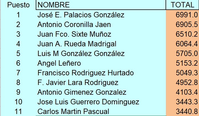La clasificación General quedó así: Solo agradecer al Club Pacense de Aeromodelismo su buen hacer, así como a la FAEX y a la Junta de Extremadura por el apoyo al aeromodelismo.