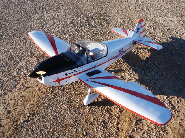 Es el de mayor tamaño de los dos que hay en catálogo, este mide más de 1800mm de envergadura y está motorizado con un Saito 120 4t, pesa unos 5 kg y es increiblemetne fácil de volar, realiza (perezoso, eso sí) la tabla clásica de toda la vida, los aterrizajes los hace andando, y si encima le calas los flaps a tope ¡ni os cuento!. Da la sensación de estar volando una pompa de jabón.