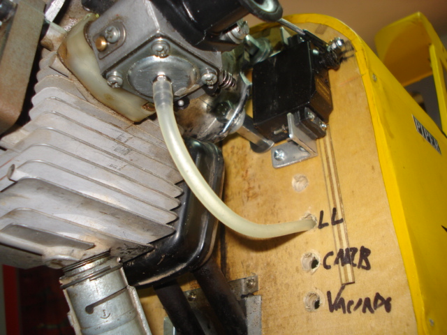 Tras este vuelo, le monté la carena, y toda la carburación se fue al traste, en vuelo tiene un funcionamiento "rico", petardeando continuamente y sin llegar a dar ni mucho menos las 7400 vueltas, del ralentí mejor ni os hablo, para que no se parara tuve que subir el trim a 2300 vueltas por lo menos.