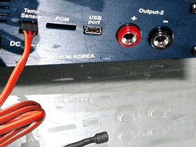 -la sonda de temperatura se conecta al cargador (lado izdo) y se pone pegada a lo que cargues: te dará su temperatura y peudes hacer que "corte" la carga o descarga si excede la cantidad que tú pongas (por ejemplo 45 o 50º).