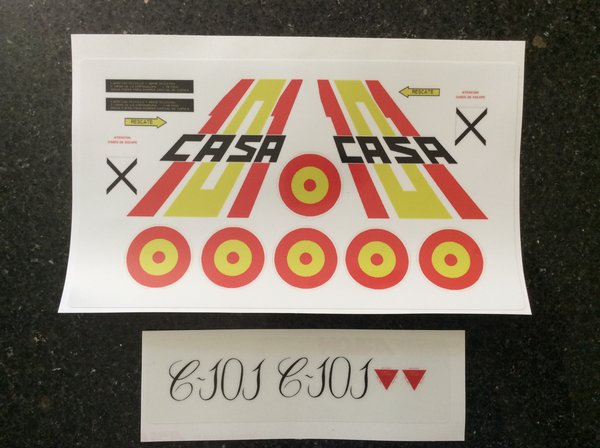 Las marcas incluidas son para el prototipo Aviojet. Si desea algo diferente, puede imprimir las marcas siguientes para despejar vinilo y combinarlas con el conjunto incluido para representar un esquema de color Flying Training.