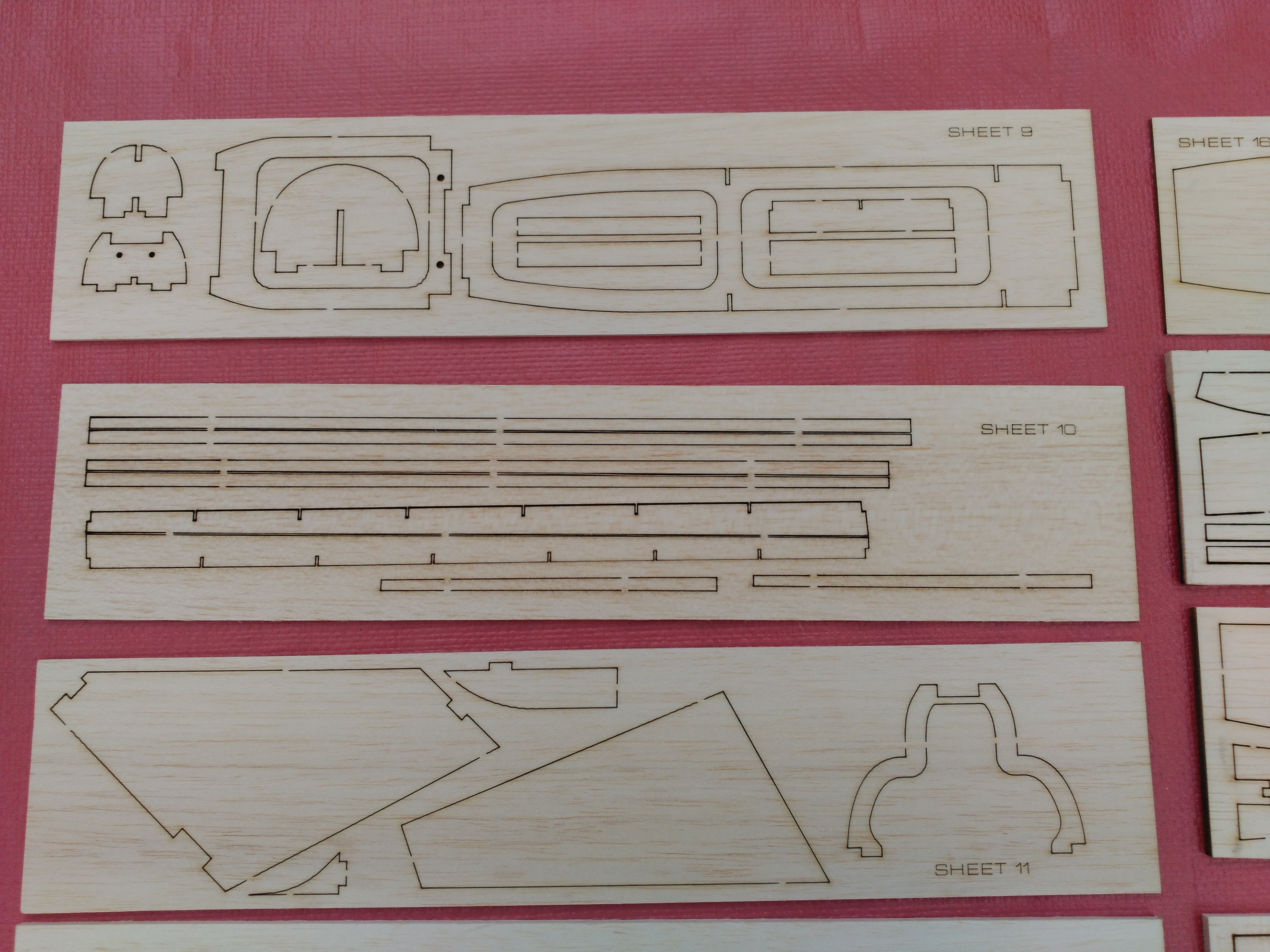 Es un kit todo madera cortado por laser, sus características son: