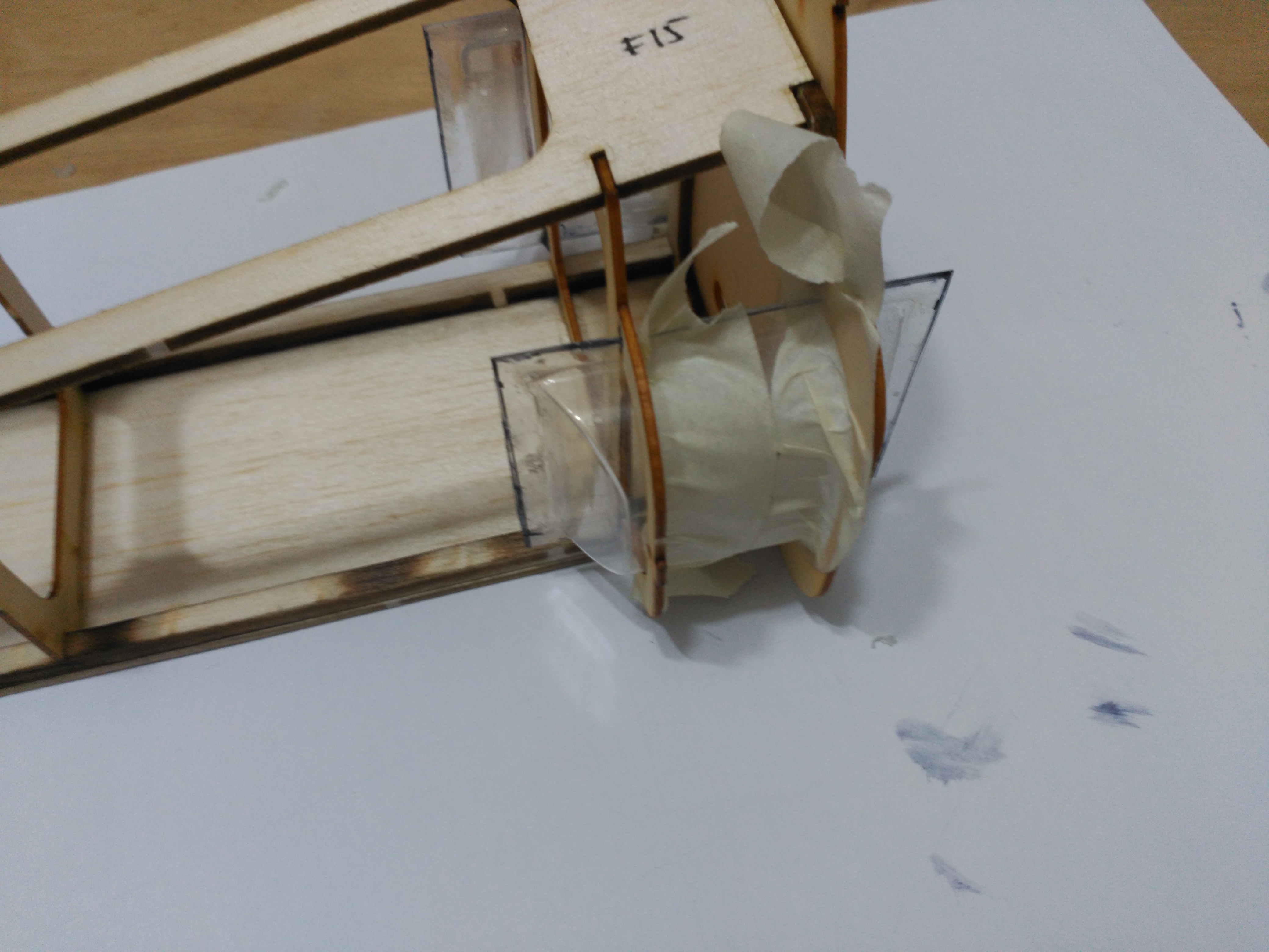 Con cinta de carrocero enmascaramos la pieza de acetato a las cuadernas F5 y F6, el manual dice que rellenemos el hueco existente con epoxi o relleno flexible.