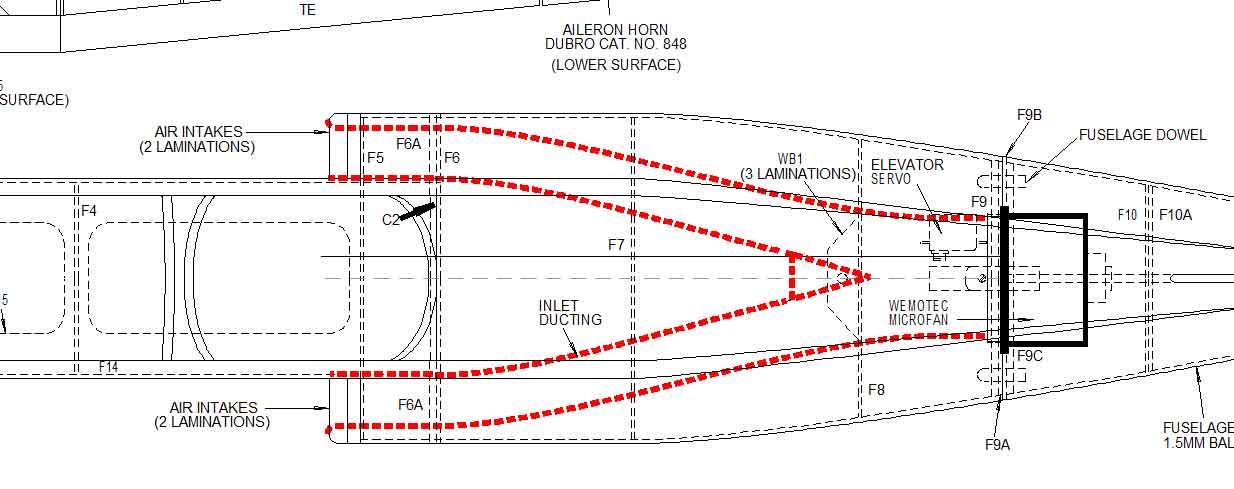 Muy bonito el avion y el trabajo de la madera, el ducto de aire que va desde las entradas hasta el EDF es el mismo que se muestra en rcgroups ? el ducto posterior al EDF es el mismo que se muestra en rcgroups ?