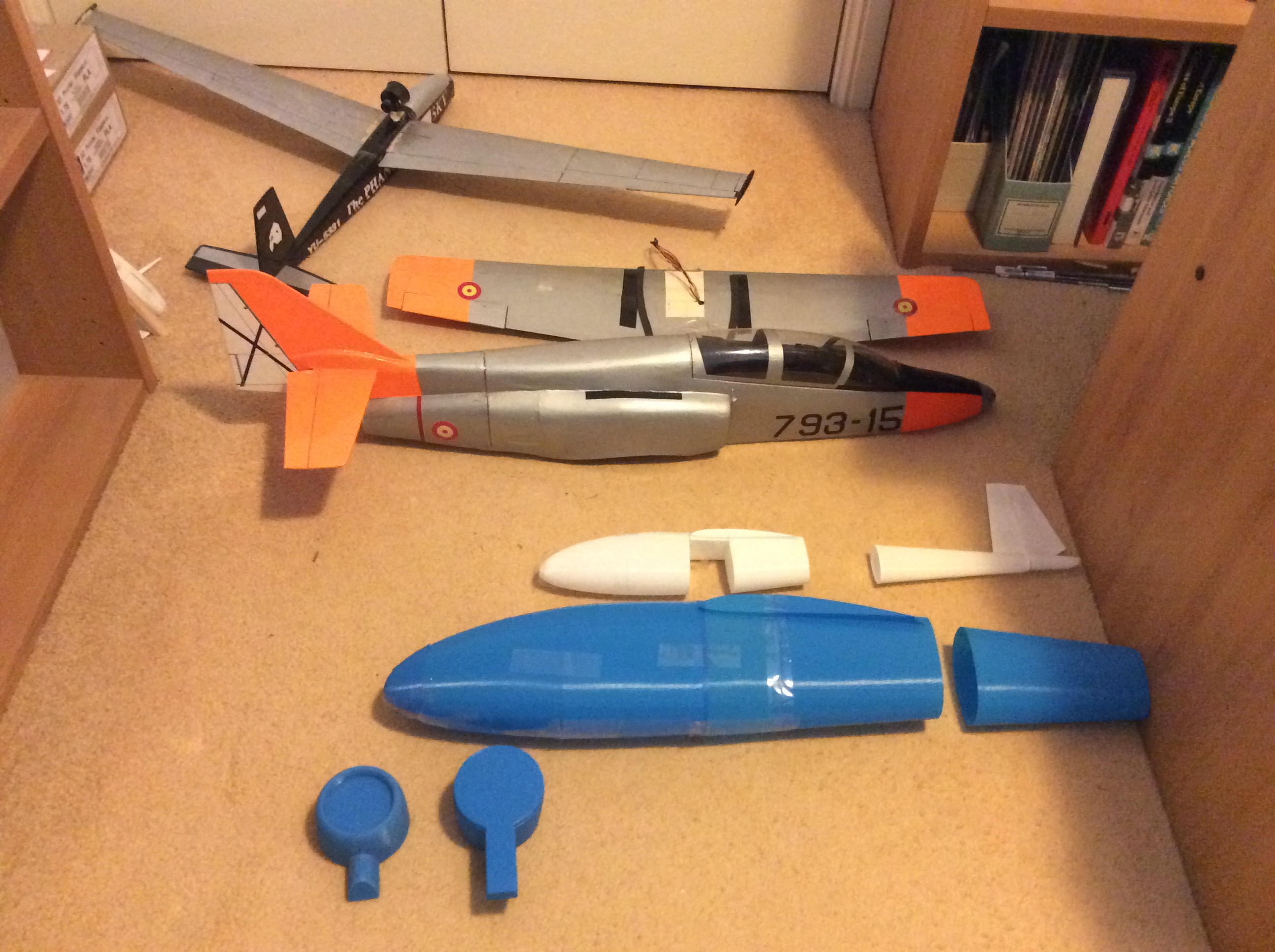 Ahora mismo estoy diseñando 2 tamaños de Blanik sailplane para la impresión 3D. Construí varios pequeños Blaniks de balsa de 1/15 de escala, y la foto muestra una versión de EDF (modelo negro). Vuela muy bien con un EDF de 30mm de Banggood en 3S.