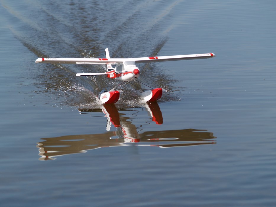 Si es cierto que en comparación los flotadores de la Cesnna que aparte del necesario rediente, tiene forma en el casco, esto influye un montón en el despegue. Los flotadores del mentor al ser planos frenan mucho más. debido a la tensión superficial del agua.