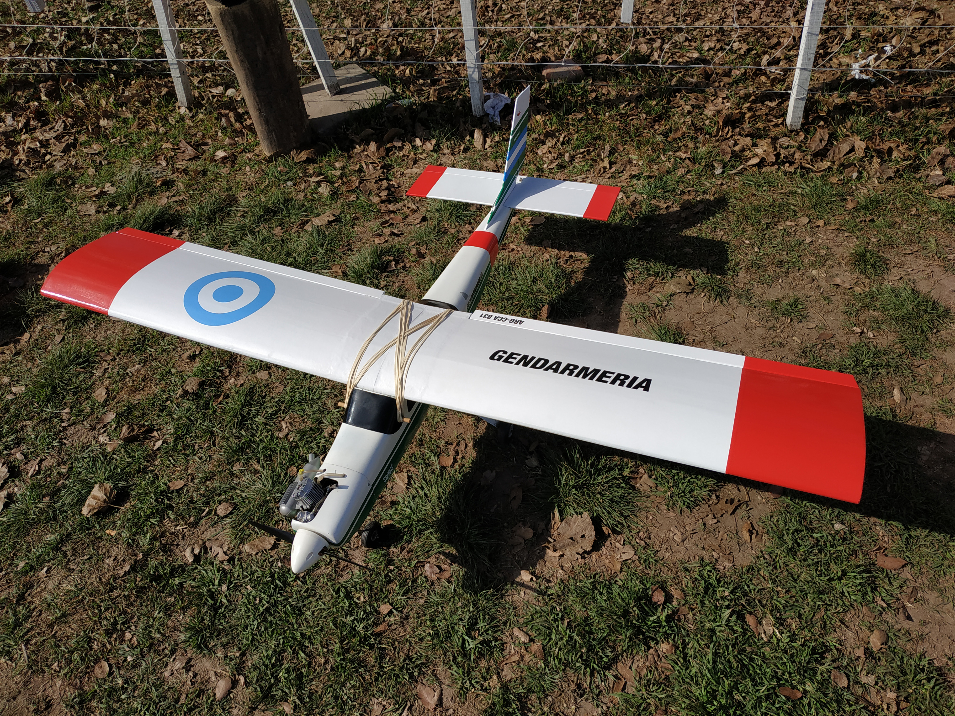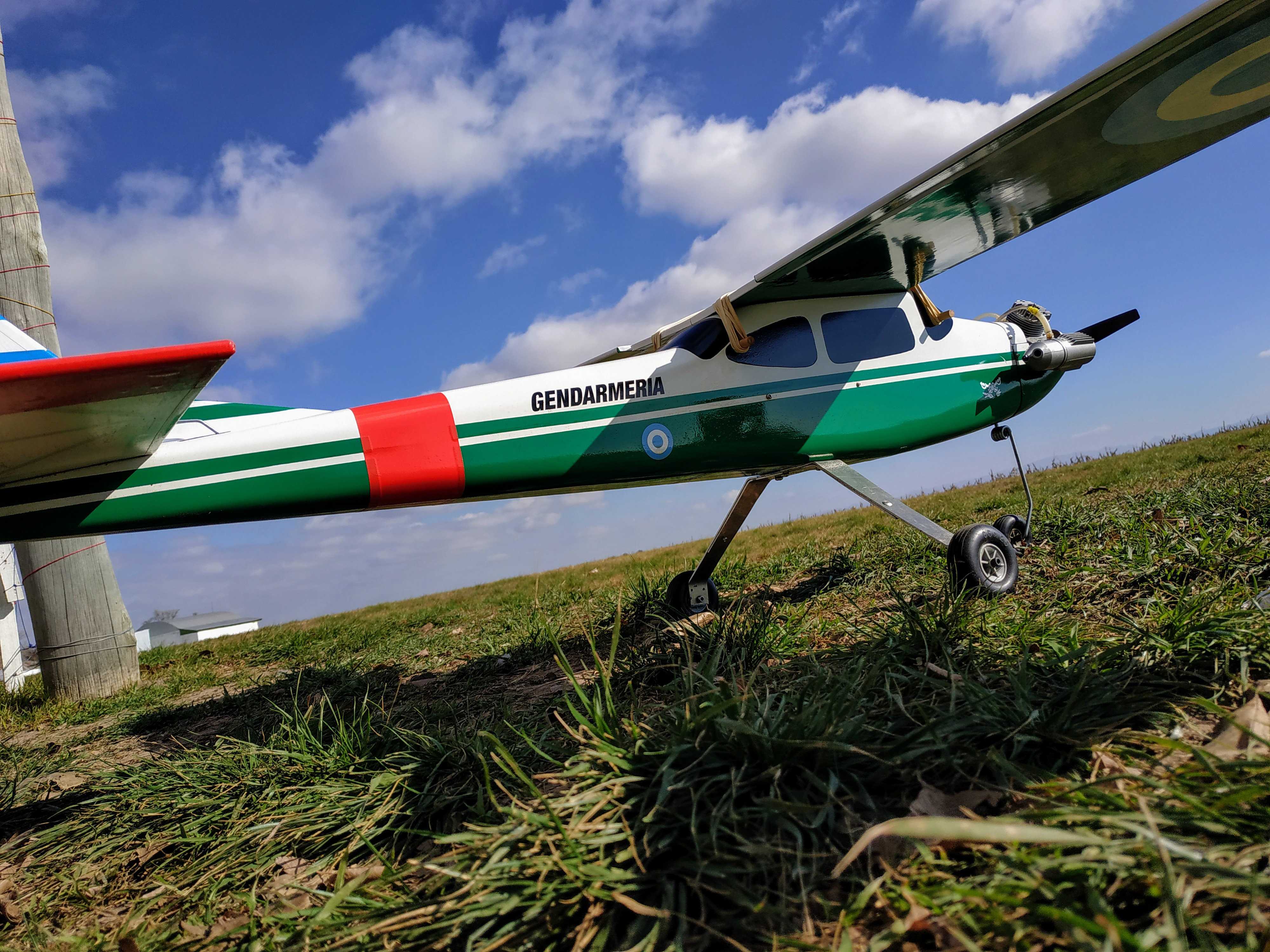 Ya venía pensando hacía tiempo construir algo con la decoración de la Gendarmería Nacional Argentina, país en donde vivo actualmente luego de haber vivido en la maravillosa Barcelona durante 5 hermosos años, ha pasado un mes de mi regreso y sólo me falta el escape que me está llegando por correo en estos días, esperemos re-aprender a volar y que pronto haya ganado toda la confianza y la seguridad para largarme solo otra vez, mi amigo e instructor Lucas Carranza junto a su padre me han ayudado mucho en la construcción y estoy seguro que este modelo me dará muchísimas satisfacciones, no los aburro más... con Uds. el Cessna 177 Cardinal motorizado con un O.S. 40 MAX FX, espero que les guste.