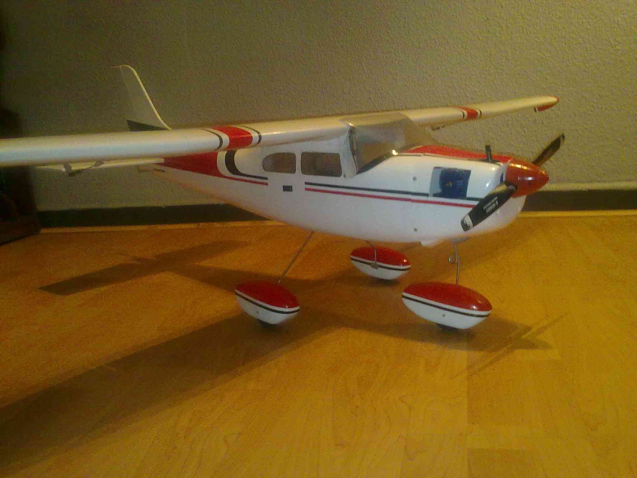 Hola a todos acabo de montar esta cessna y la verdad que tiene buena pinta , el fuse es de fibra y los acabados no estan mal , la he montado con un jba 56 y haber si puedo estrenarla este fin de semana.La coji barata en una puja de ebay (http://cgi.ebay.es/Cessna-182-Skylane-6 ... 33546c453b), y bueno os pongo unas fotos para que veais como ha quedado a falta de los tirantes de las alas.