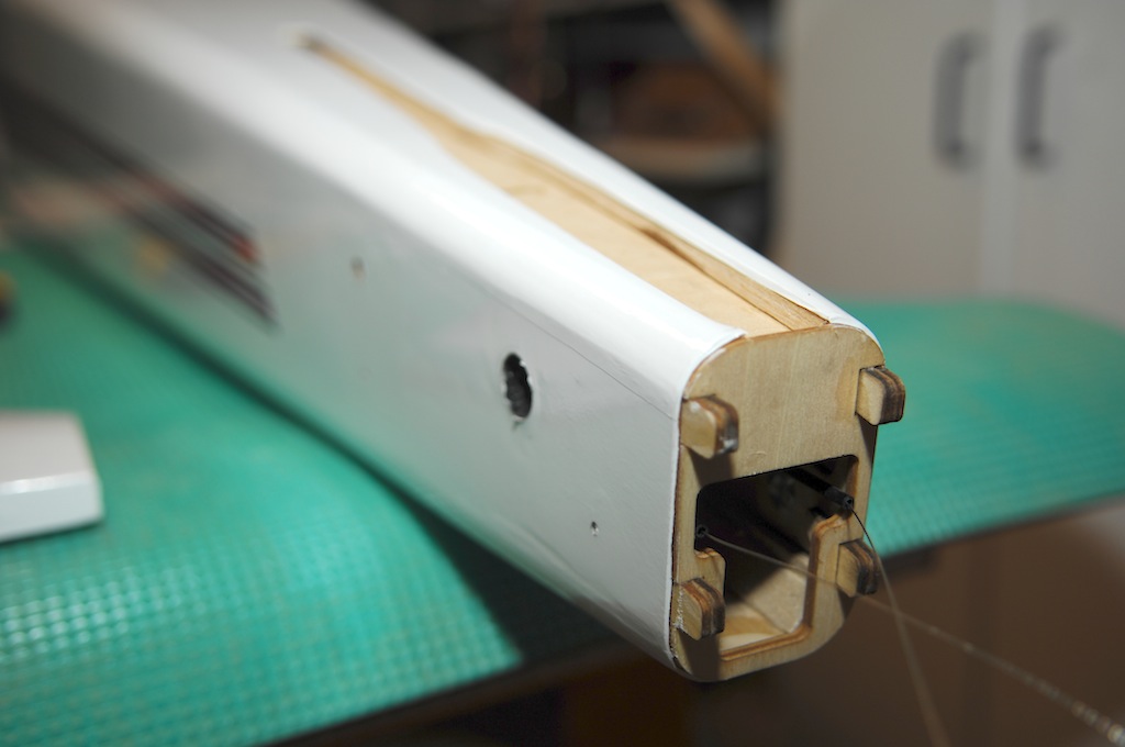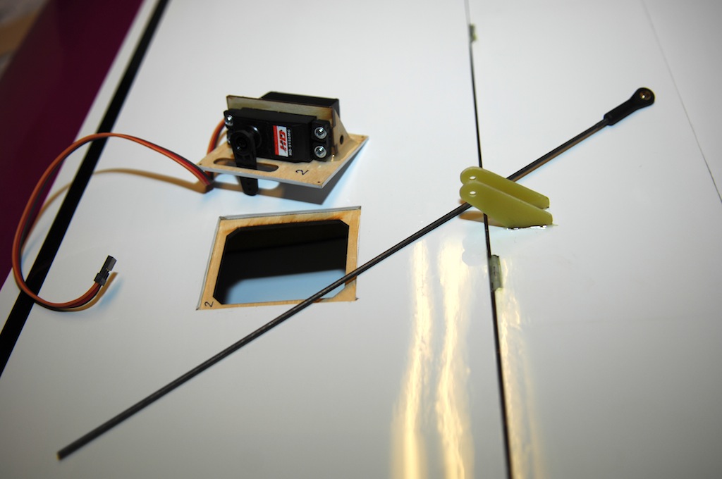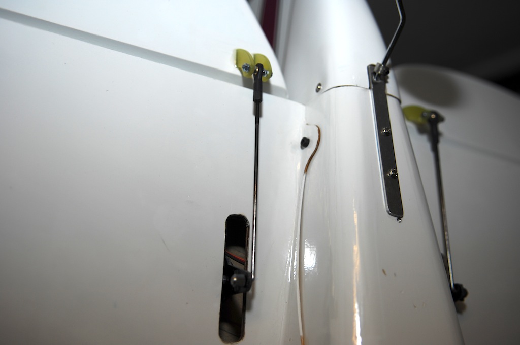 Pero por que ponen los anclajes de los servos, en este caso que he visto, del timón de profundidad pegado a un lado, en este caso el interno, cuando poniendo los servos en el centro, primero tendría muchas mas fuerza a la hora de tirar, y segundo la fuerza sería repartida entre todo el alerón y la resistencia a la corriente del aire sin riesgo de rotura.