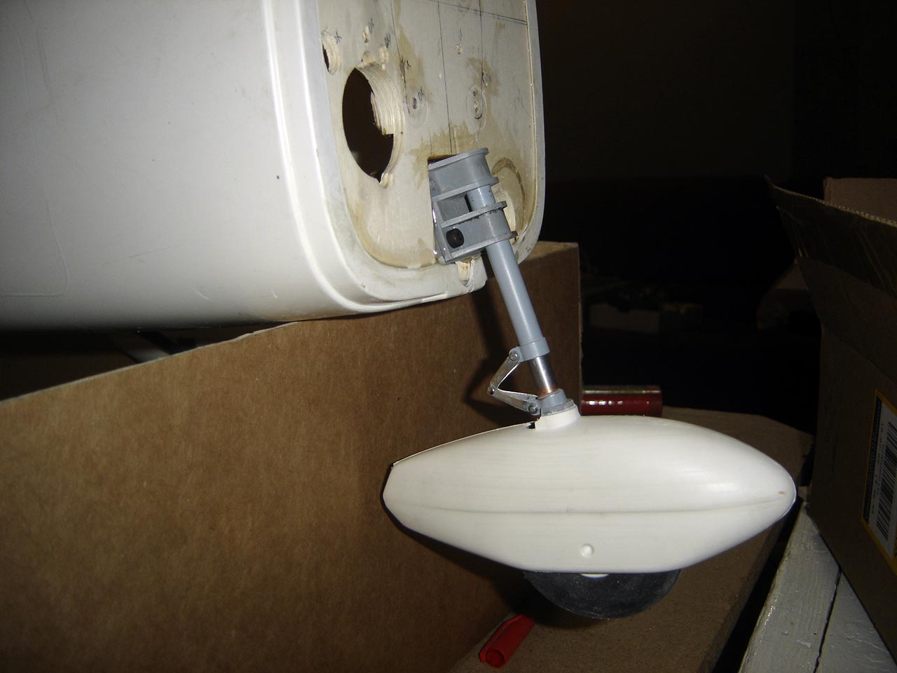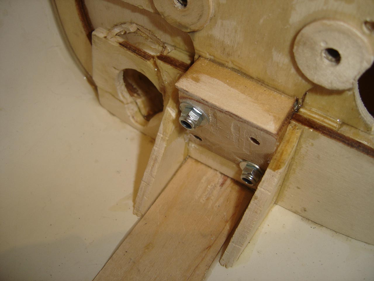 Como la pata no se puede doblar, hay que darle el angulo de otra forma, yo realice una caja en la cuaderna del motor, y pegué dos chapas de contrachapado de 05 dandoles el angulo que necesites, y luego reforzandolo por dentro. Me falta por reforzar todo el interior con alguna tira de fibra de vidrio ya que al ser un motor de gasolina y el contrachapado que trae el kit, viene muy bien cortado, pero creo que es un poco blando, por eso me falta reforzar un poco.