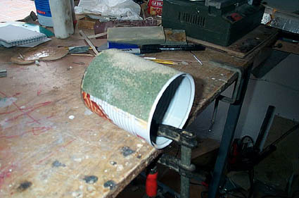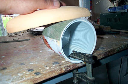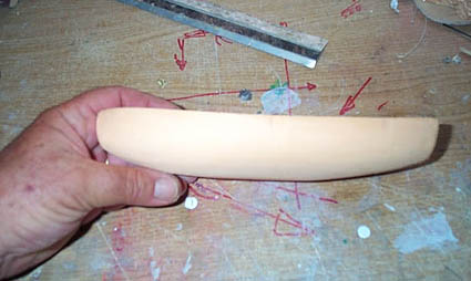 Las fotos hablan por si solas. Hay una a base de lata de fabada y lija gruesa pegada, que es una herramienta para formar el arrufo de cubierta lo más uniformemente posible.