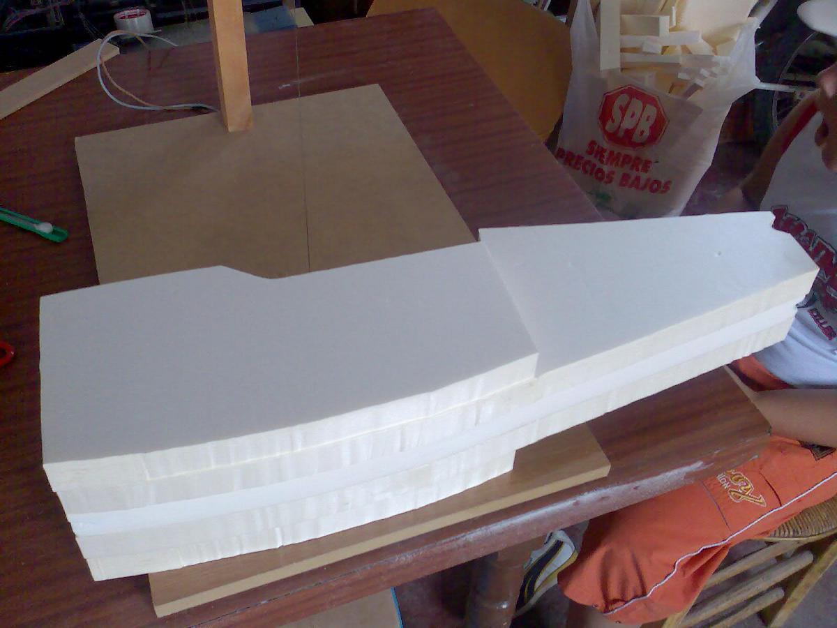 Quiero hacer el fuselaje en foam en dos partes, y vaciaro por dentro, con otro inventillo de piezas de varias formas con alambre caliente para ir sacando surcos de diferentes formas y tamaños.