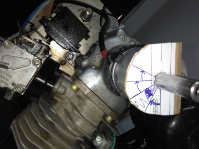 Exacto, mira, desde delante, aflojas el sensor, y lo giras hacia la izda., en contra de agujas de reloj 1mm si puedes, sino lo menos que puedas, estarás retrasando el avance del CDI. Luego ya lo que corresponda en grados ese mm, serán los grados de avance.