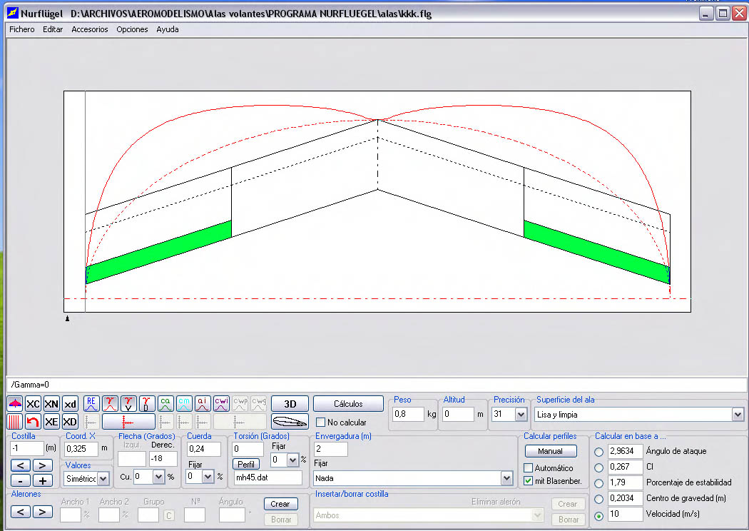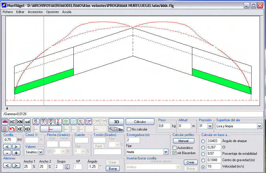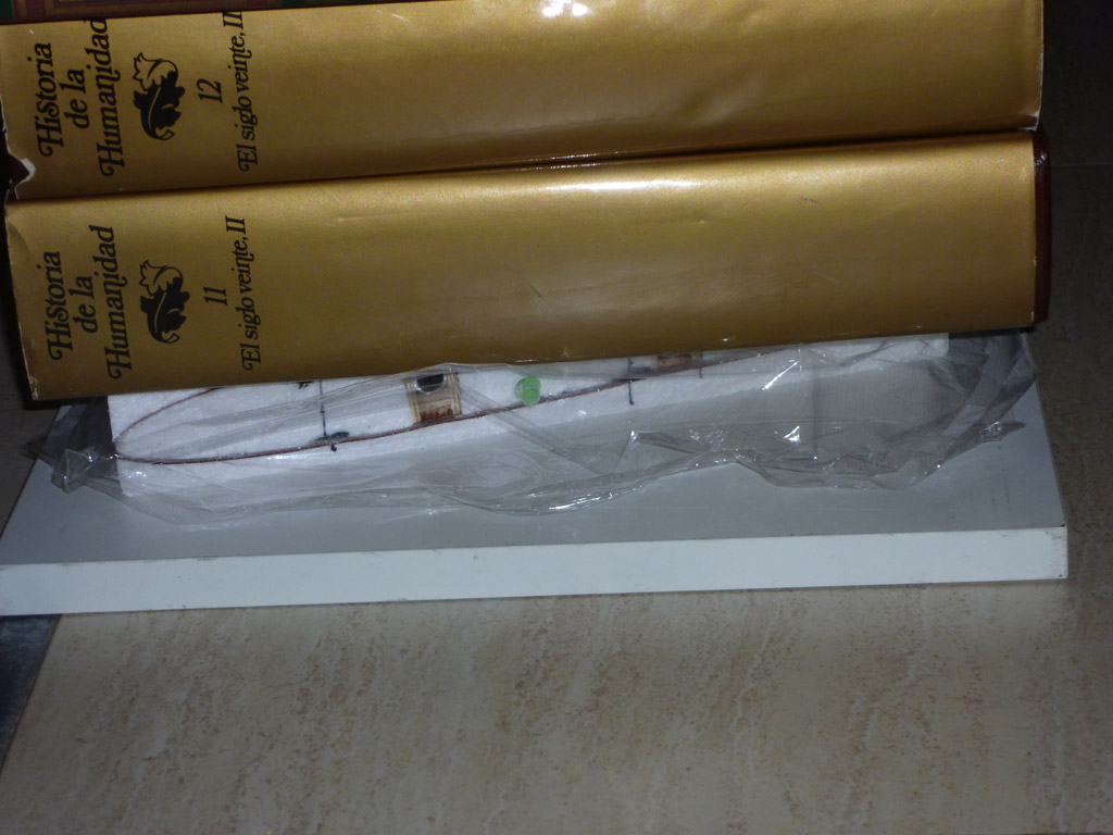 El resultado con respecto a su rigidez estructural es una auténtica tabla de planchar, si bien el peso final en orden de vuelo se ha ido a 1430 gramos con motor 2830 (quizás un poco escaso en llano pero es el que tenía disponible) variador de 40 amperios y batería de 3 elementos de 1500 ma.
