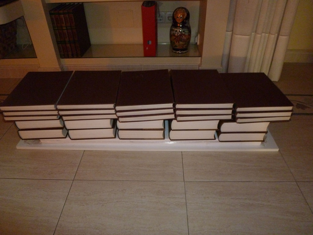 Con el sistema anterior, había formado el núcleo que iba a ser enchapado, esta vez utilizando cola de poliuretano y chapa de sapelli (o similar) bajo 25 “libros de presión” durante más o menos 10 horas.