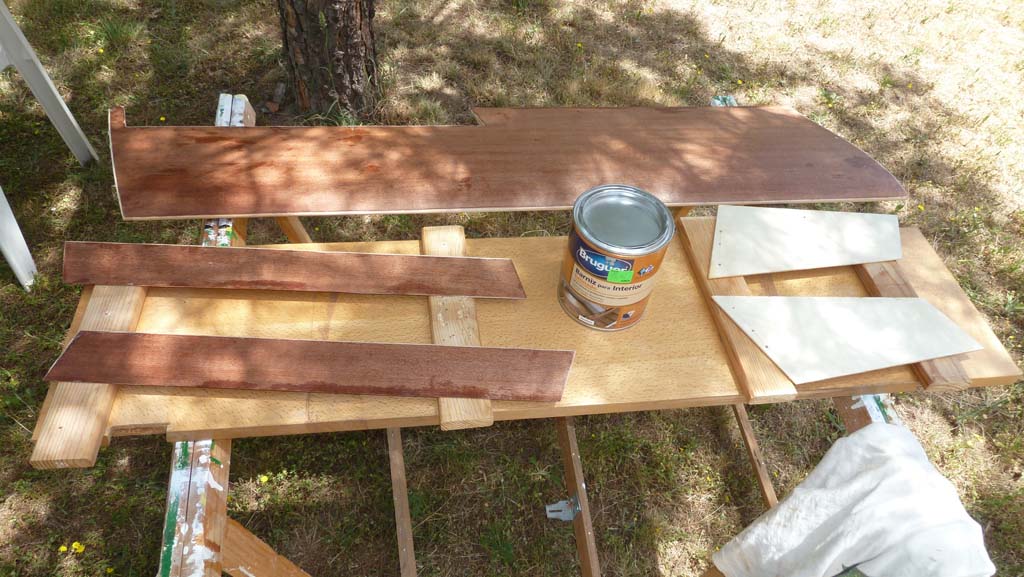 Una mano de barniz de poliuretano y acabado en pintura.