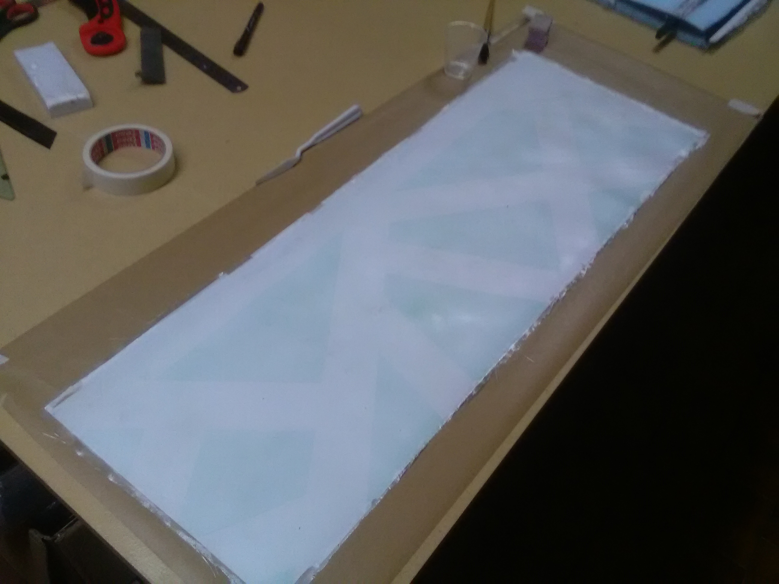 1°- pegar cinta doble cara en la fibra de 49gr.