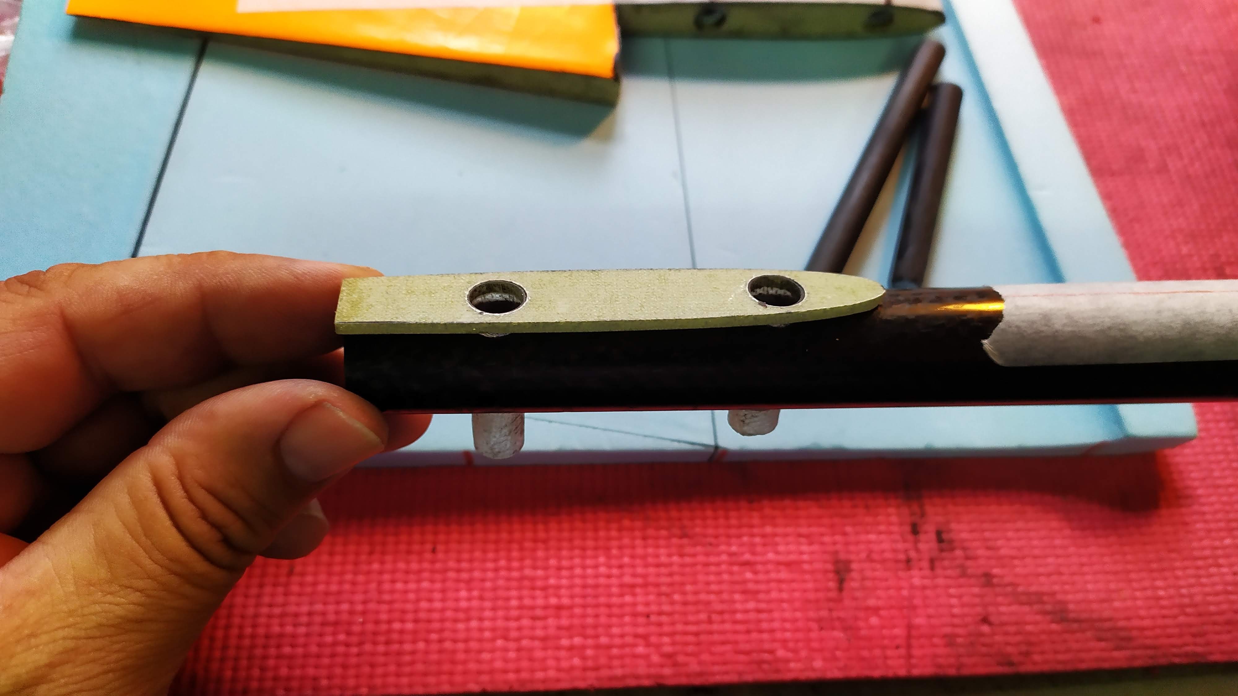 El larguero que hago tiene 25mm, y coloco en la parte más gruesa del prefil. El rebajo para larguero queda plano pero después coloca el carbono empapado con resina y luego coloca el papel vegetal acaba por rehacer el prefil.
