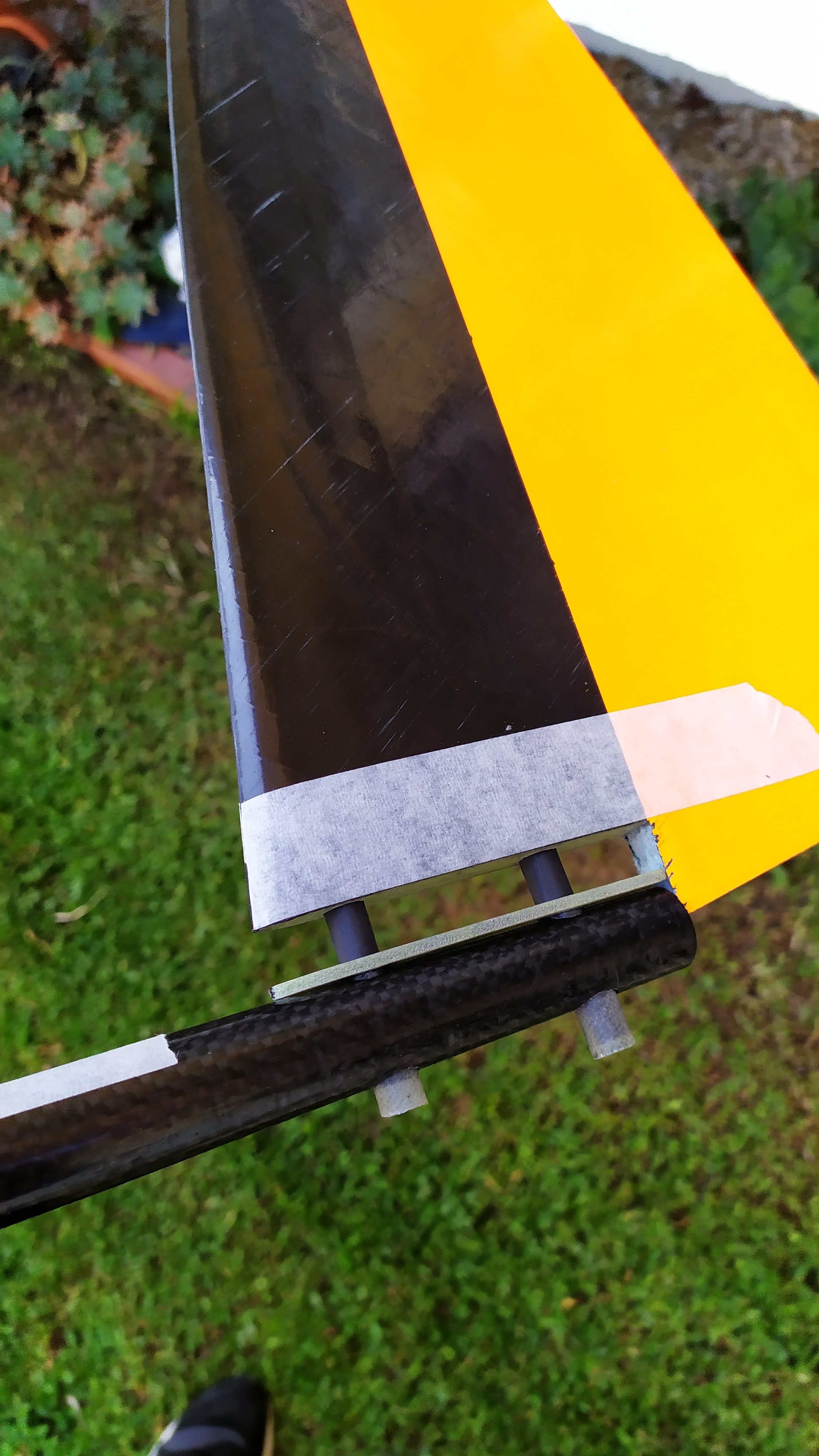 Las siguientes imágenes se muestran como el estabilizador vertical se fija al tubo de la cola.