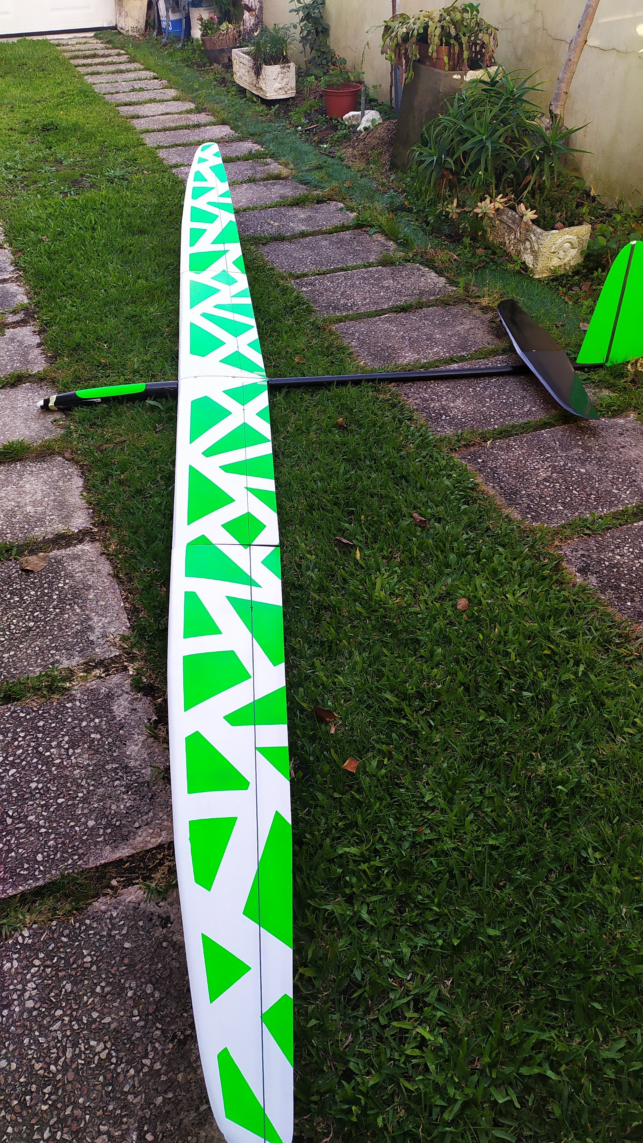 el peso de las alas laminadas em fibra es un poco más pesado pero no mucho ... una ala completa cerca de +- 780-800gr, la diferencia es la resistencia al carbono es mucho mejor. El molde v-mout está hecho de pvc, nylon y mdf hd.