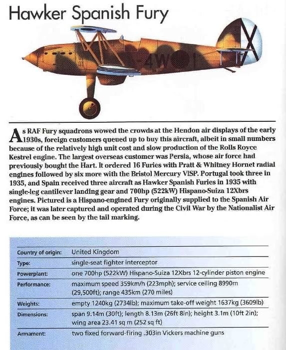 El caza republicano se llamaba Spanish Fury, tengo fotos y dibujos en color de Abellán, se hizo en la Fábrica Hispano de aquí, Guadalajara, el Spanish es distinto al Hawker Fury, morro, tren de aterrizaje, sin duda me quedo con el Spanish Fury.