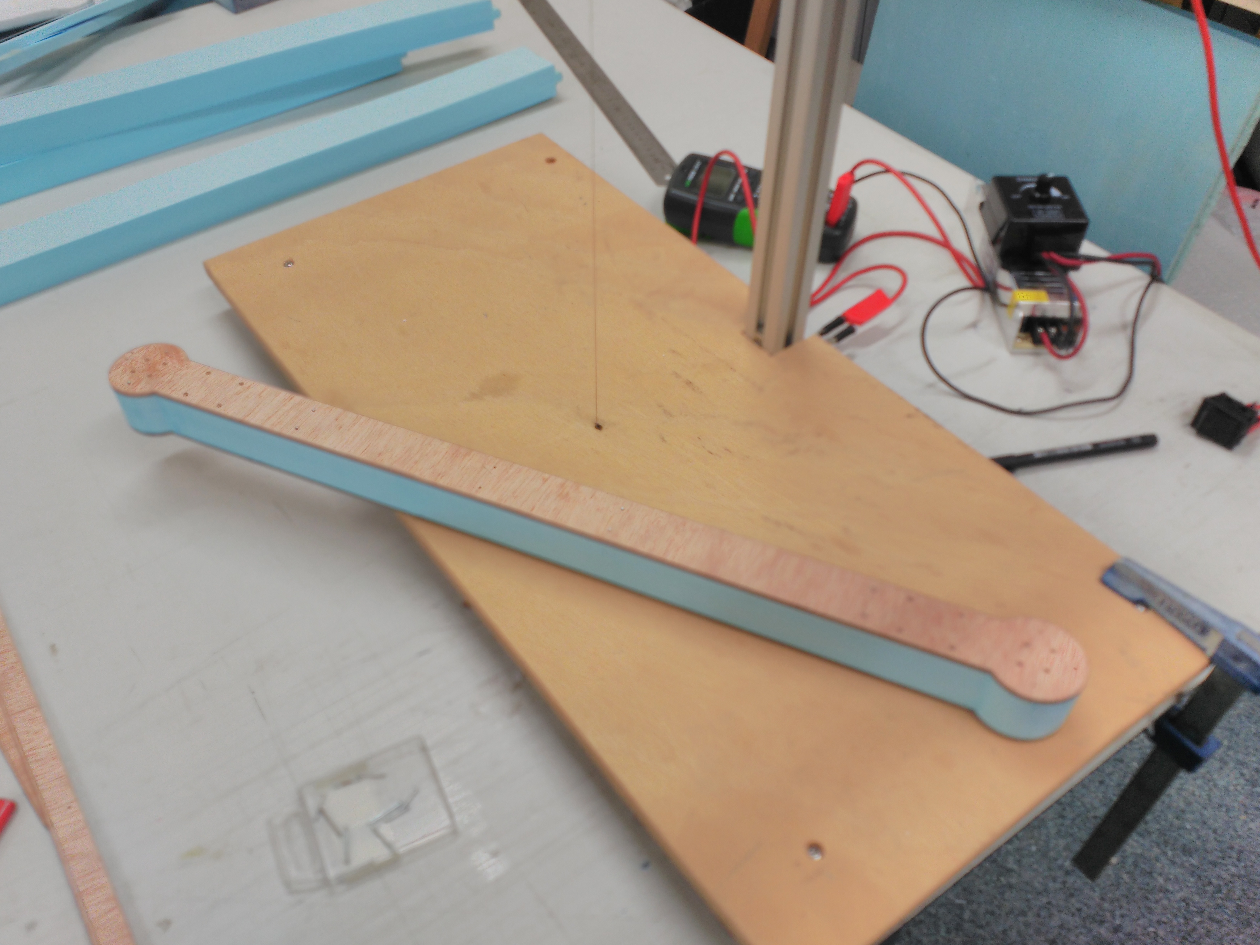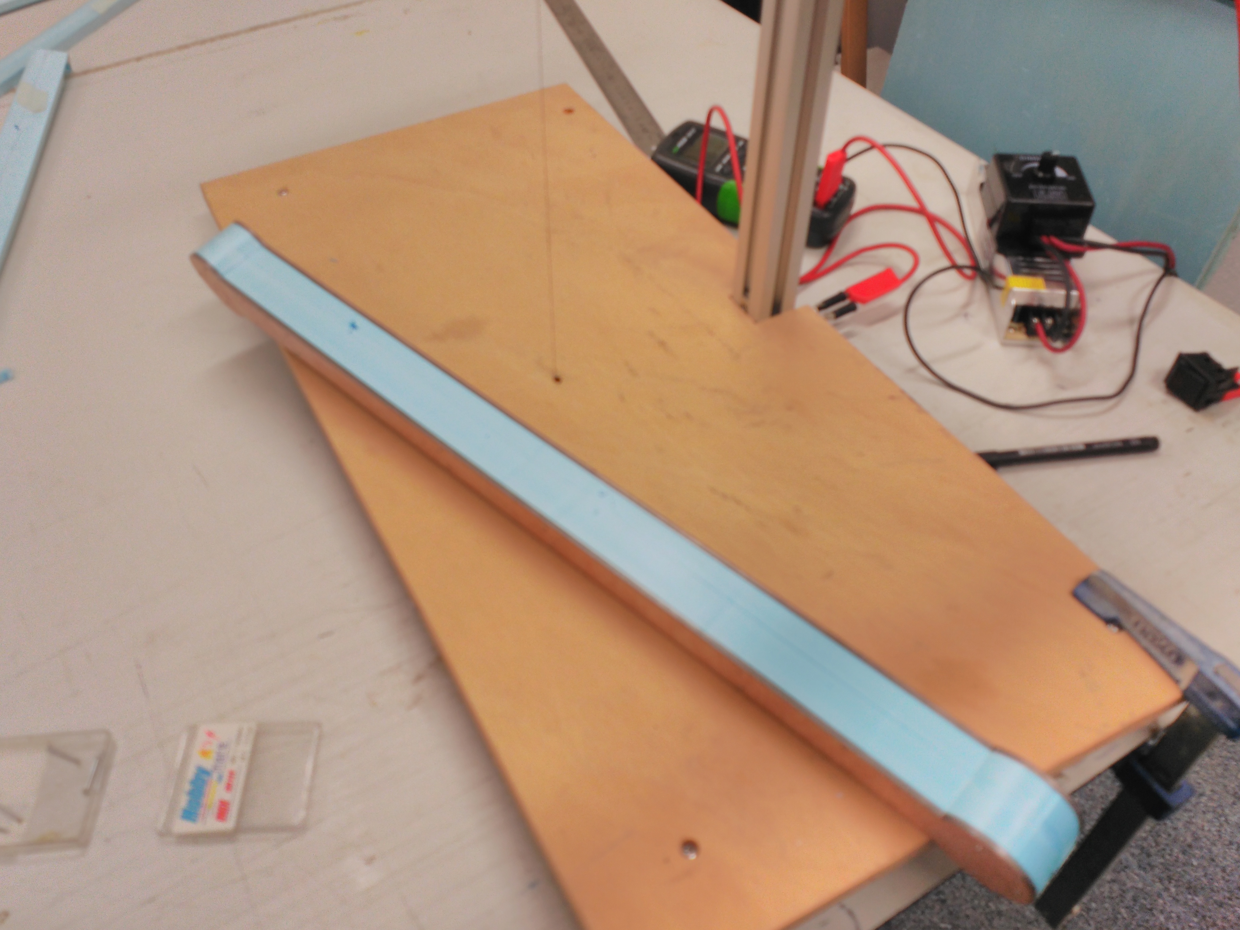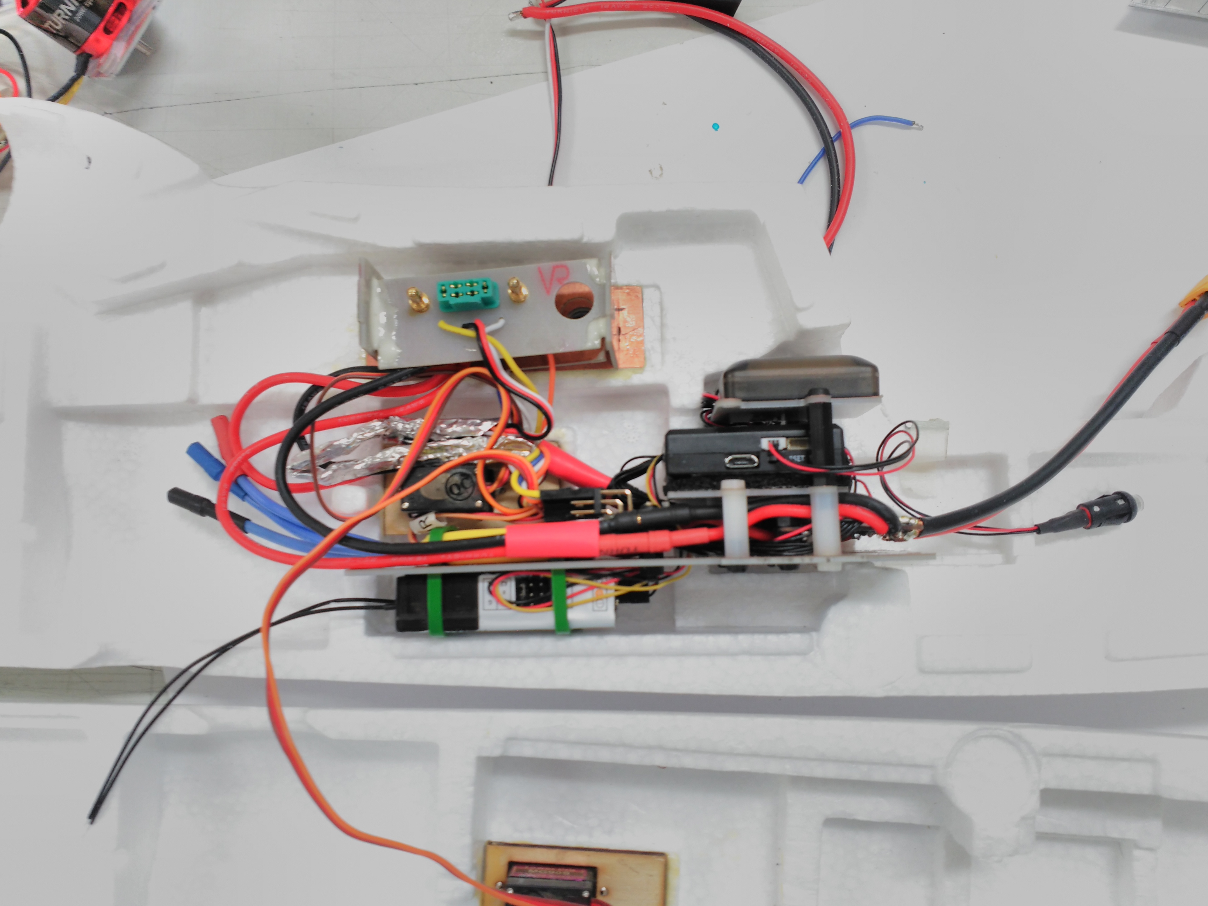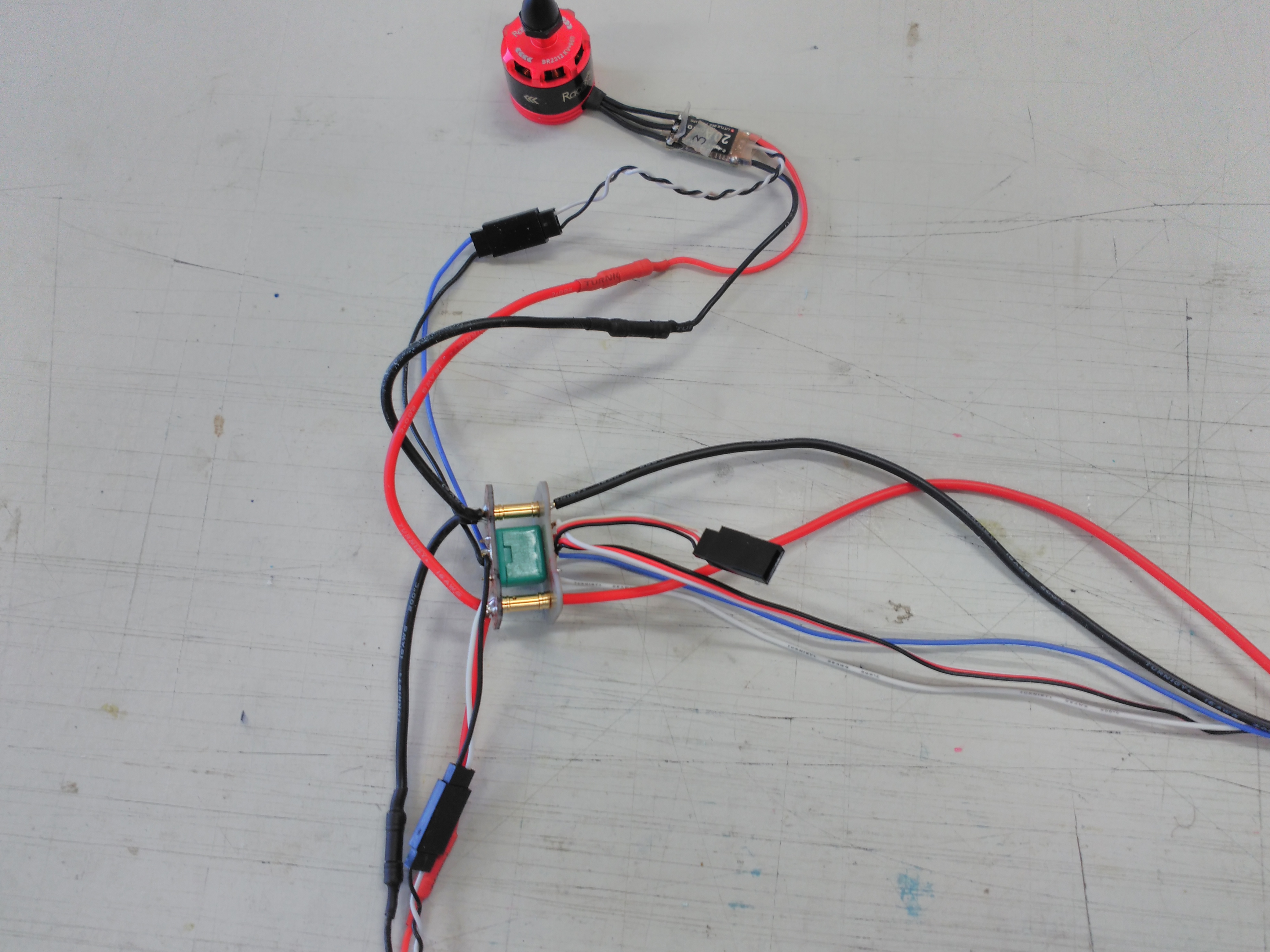 Bueno pues con todo esto y después de hacer una pesada de los componentes (peso final estimado 1700 g) y unas pruebas rápidas en el banco para saber los empujes de motores (unos 800 g 25 A para avión y 700 g 10 A los del multicóptero) nos ponemos manos a la obra con la duda si este pequeñín será capaz de ser un quadplane operativo.