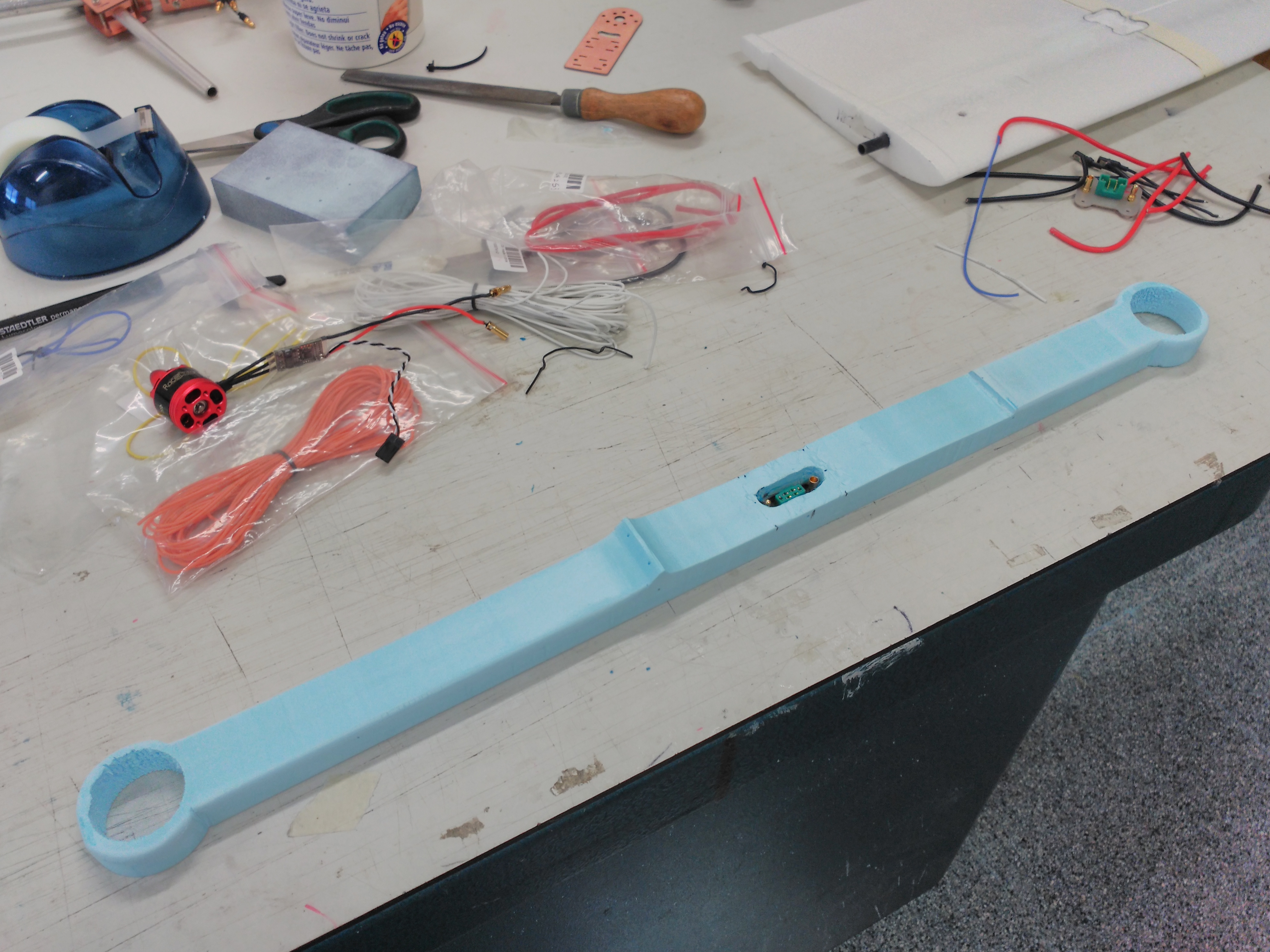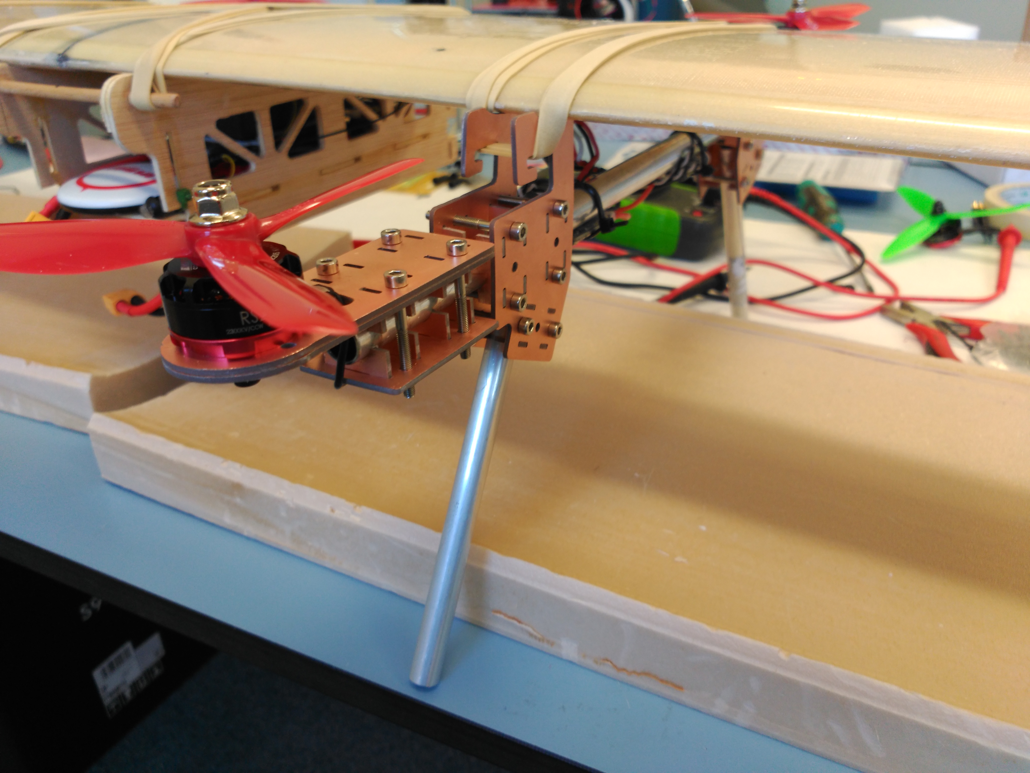 La principal premisa del proyecto además claro esta de ser un quadplane de rápido montaje sera que sino era viable, por lo menos tuviéramos un avión para otros fines. Esto nos implica que los brazos del multicópter deben de ser desmontable fácilmente así como también todas sus conexiones eléctricas que no son pocas.