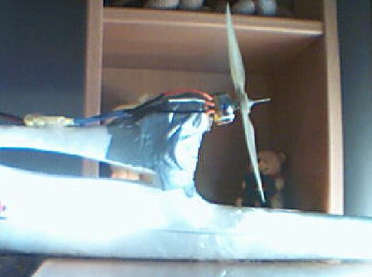 Finalmente lo probé como está y va bién, lo único es que al dar motor se va hacia la derecha, pero va recto y planea bién (con una piedra en la punta, por aquello del CG). Tendré que recolocar el motor y darle algo de incidencia a la izquierda.