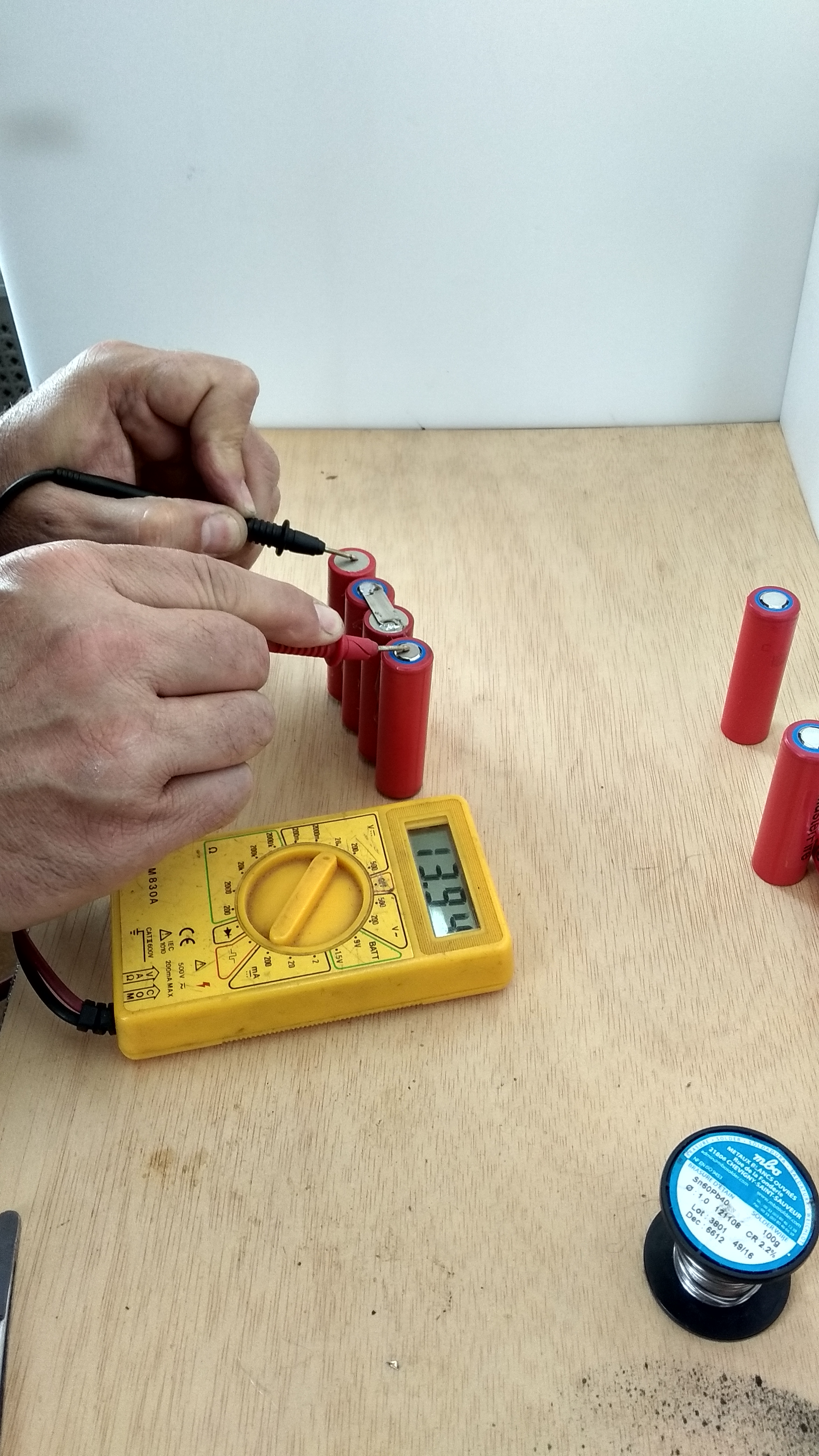 Lo primero que hago al recibir un lote es medir el voltaje de TODAS las baterías que lo componen, ya que aveces de 30 o 40 aparece una en cero o con uno o dos voltios siendo 3,49v aproximadamente el voltajo normal que habrían de tener