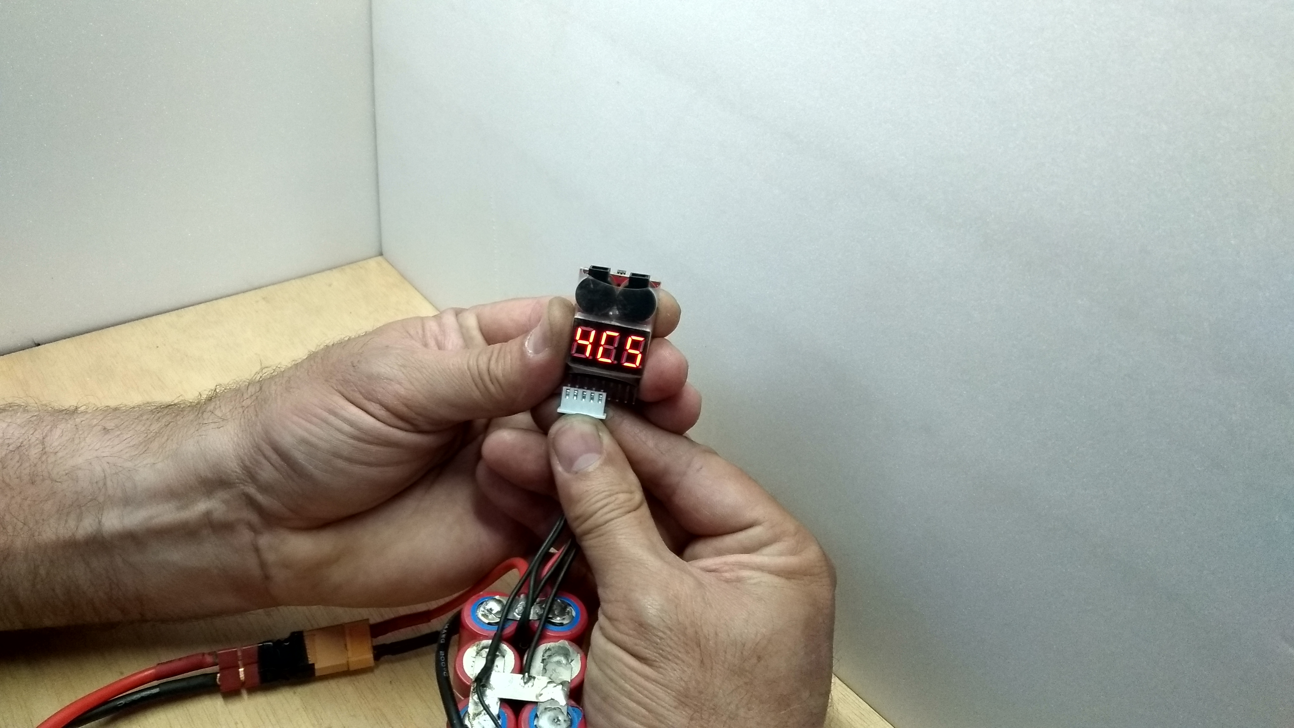 Una vez realizadas las soldaduras debemos comprobar cada conexión para confirmar si el voltaje que va a indicar el conector de carga balanceada al cargador coincide con el voltaje que corresponde.