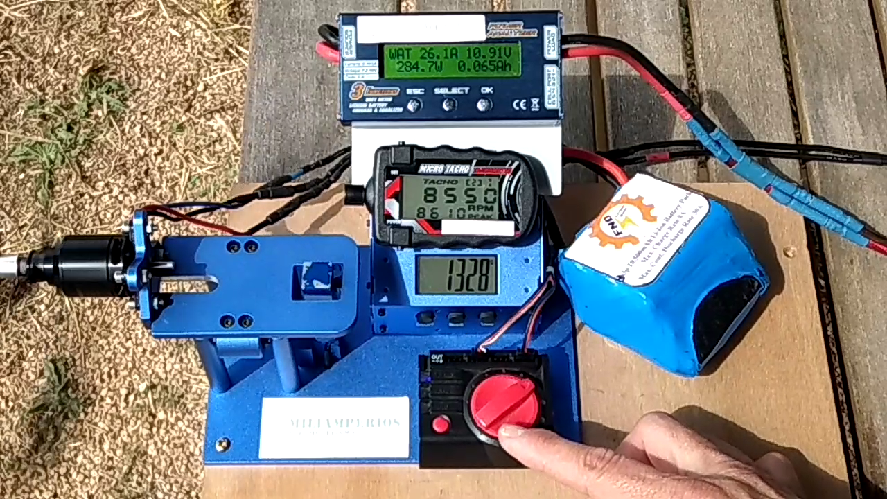 Para ello deberemos considerar el consumo de nuestro motor y su comportamiento a los diferentes voltajes que pueda funcionar, la eficiencia y la hélice que podemos o debamos utilizar (por si no nos cabe una helice mas grande), etc