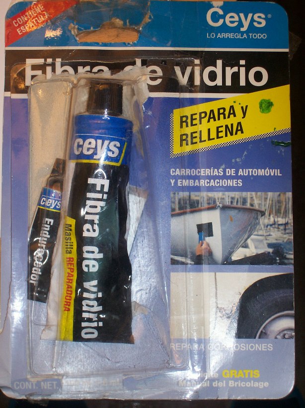 Te pongo una foto de la pasta que venden de fibra de vidrio. La compre en una ferreteria y me costo menos de 5 euros.