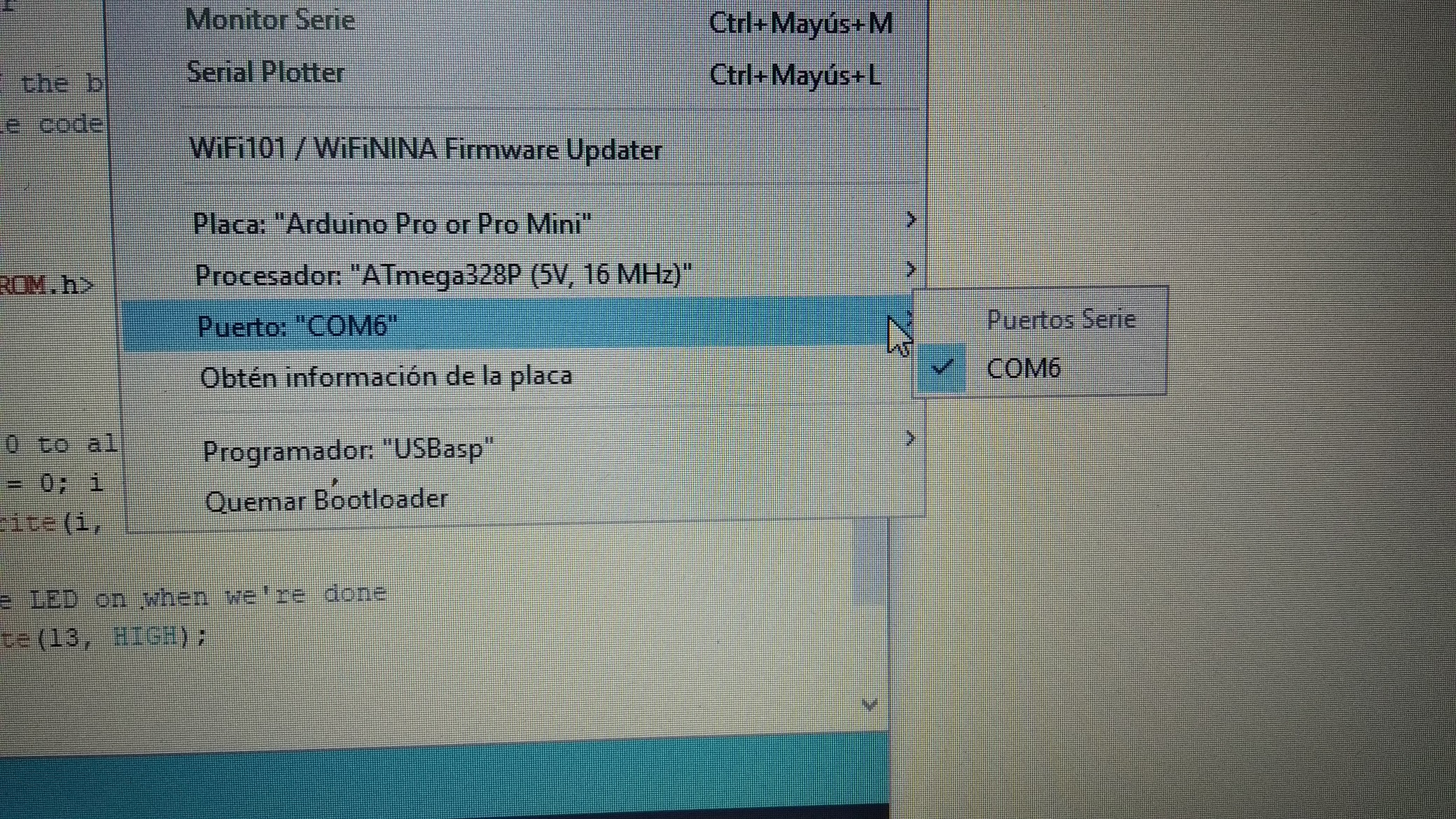Puerto Com: de momento lo dejamos para el siguiente paso (ya que tenemos desconectado el usbasp del pc).