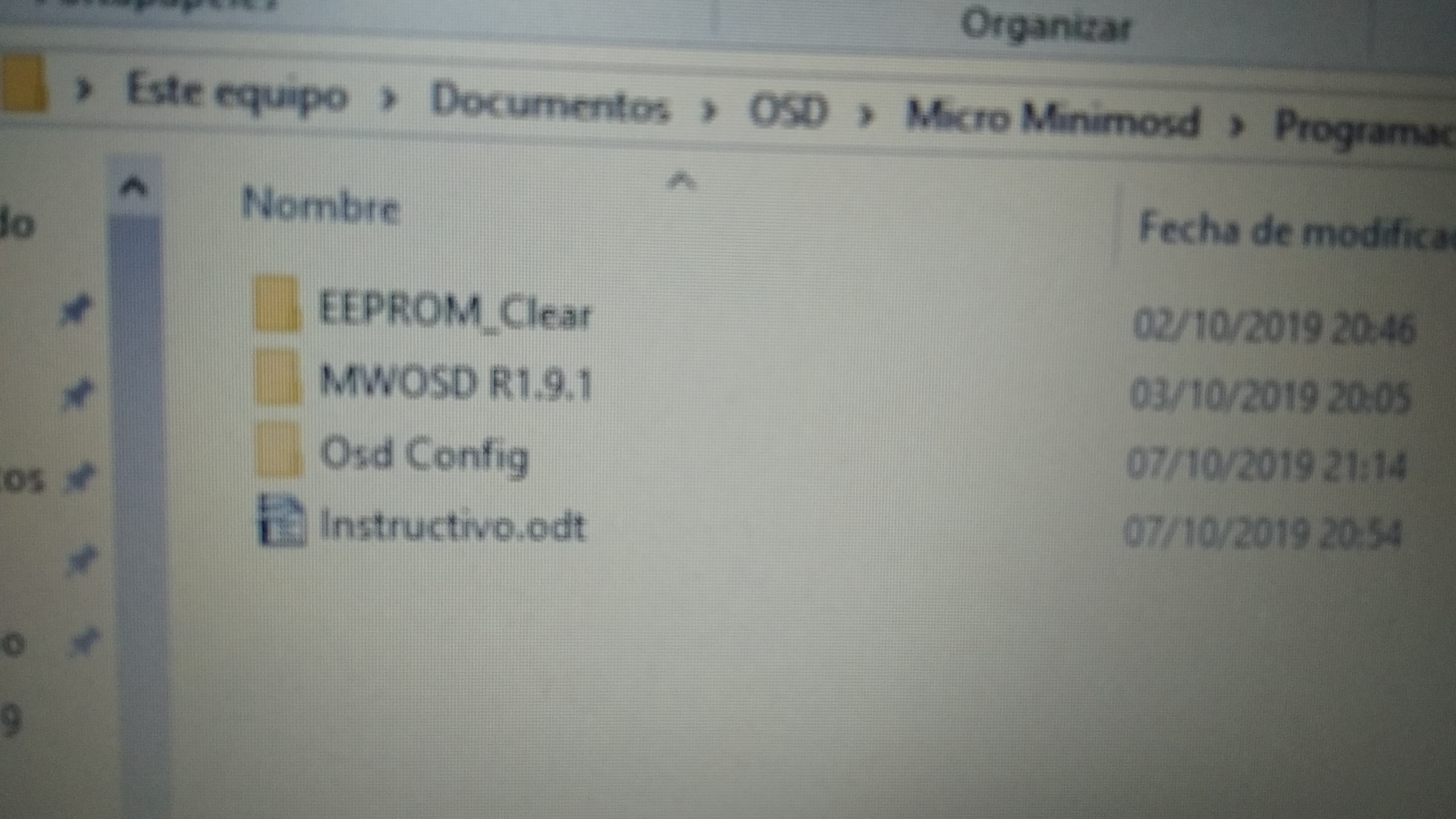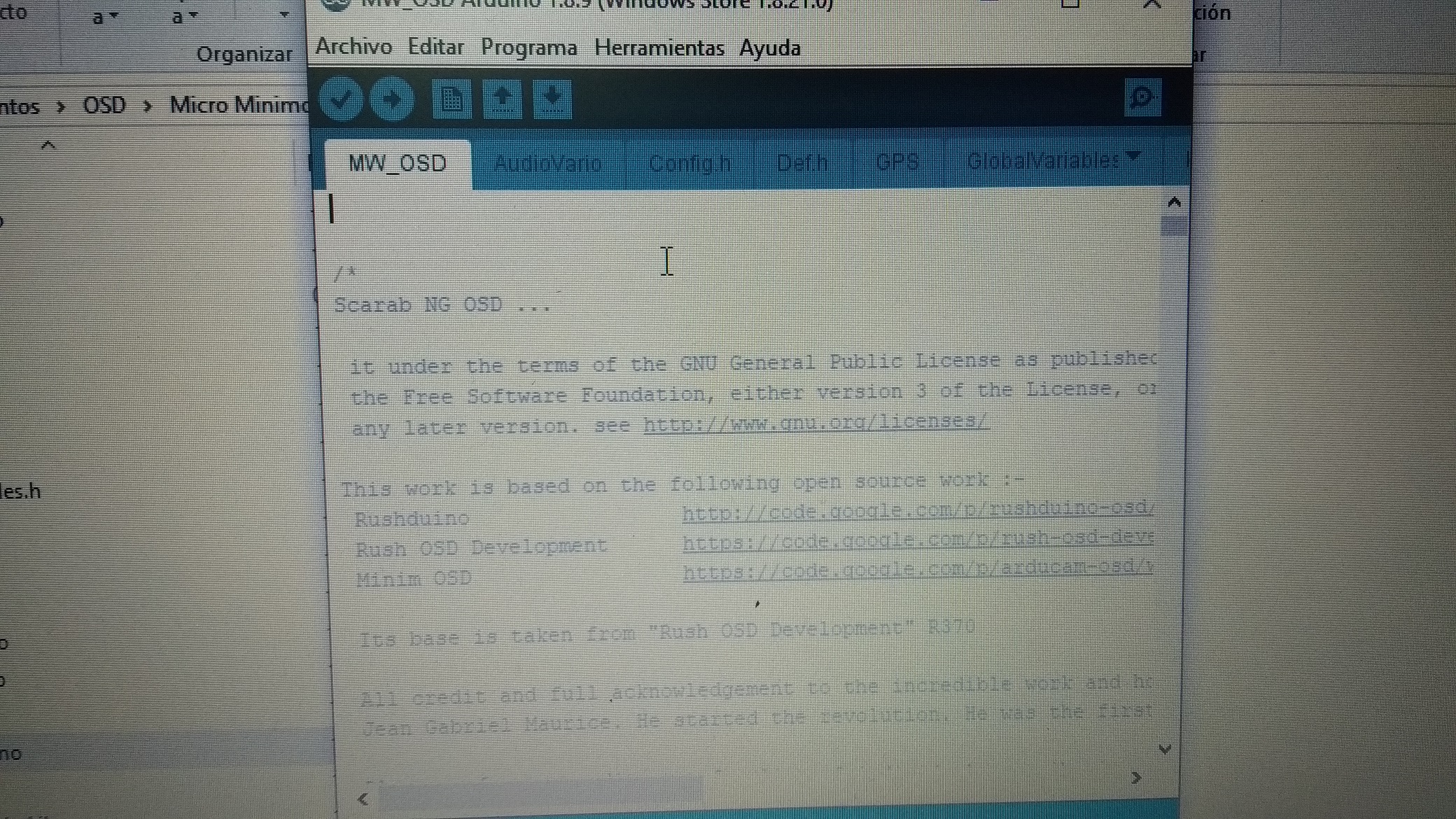 luego seleccionamos la carpeta scrab_osd_1.9.1.0 y allí buscaremos el archivo MWOSD.ino
