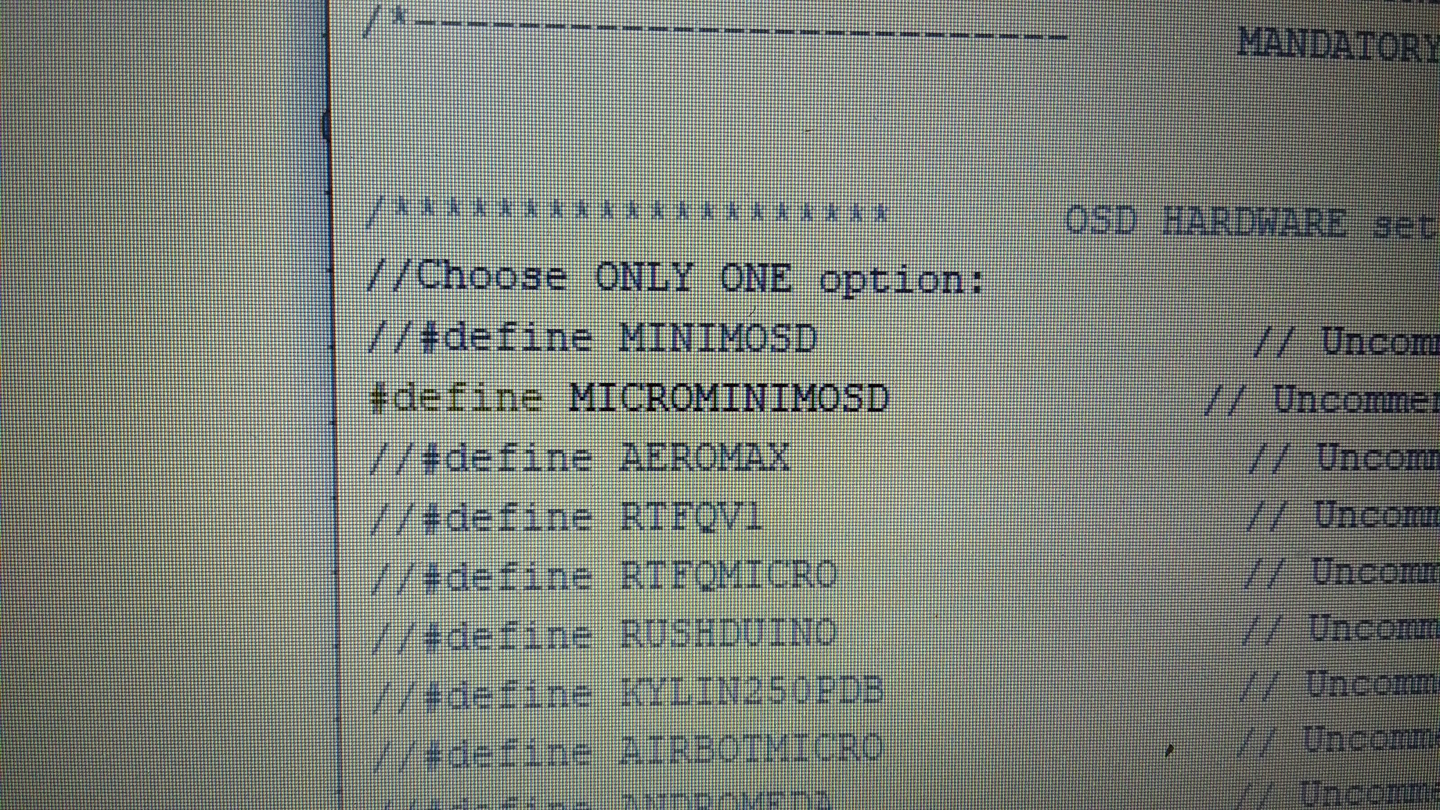 Debemos ir a la pestaña Config h y allí seleccionar "descomentando" MicroMinimOSD