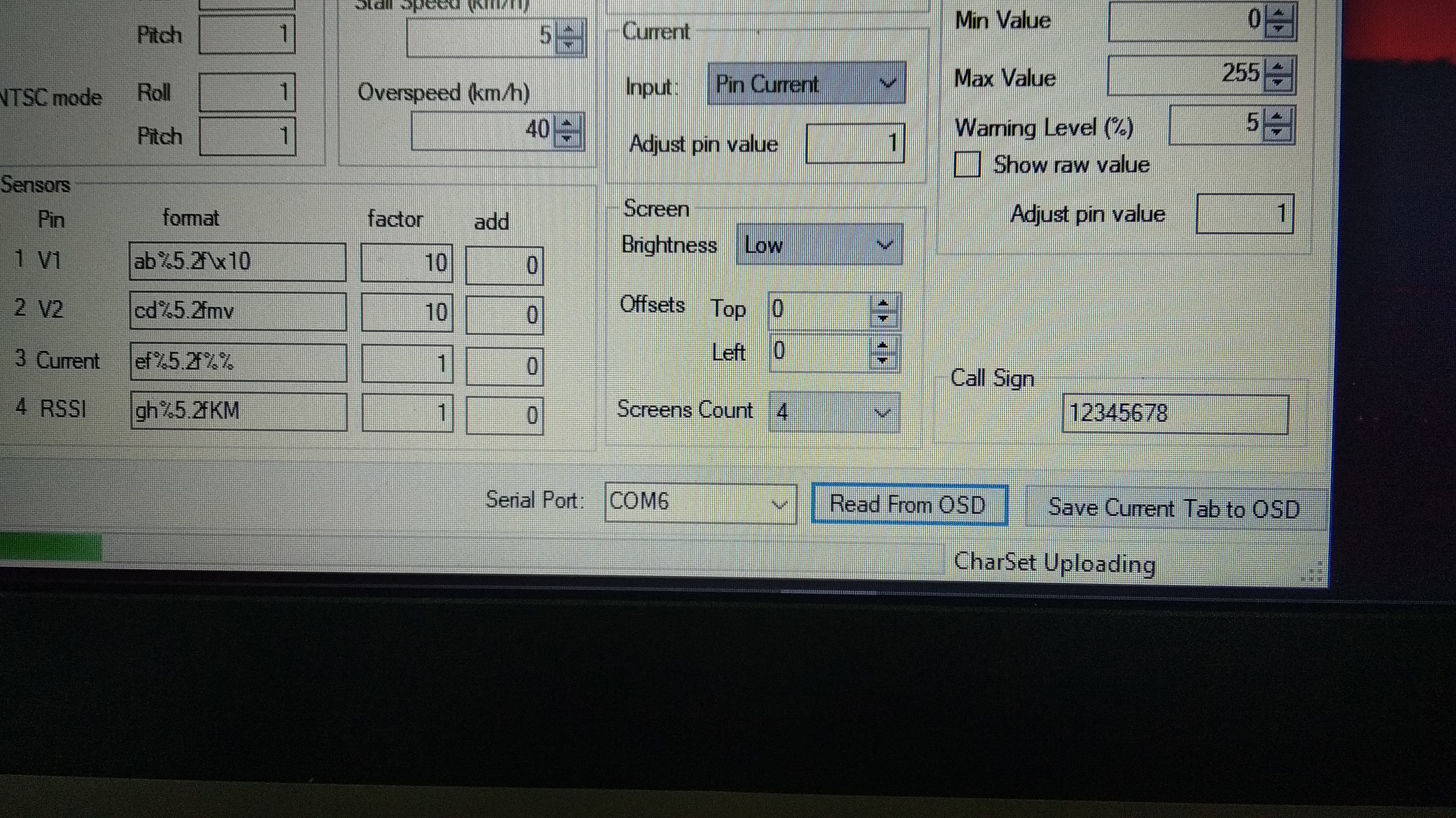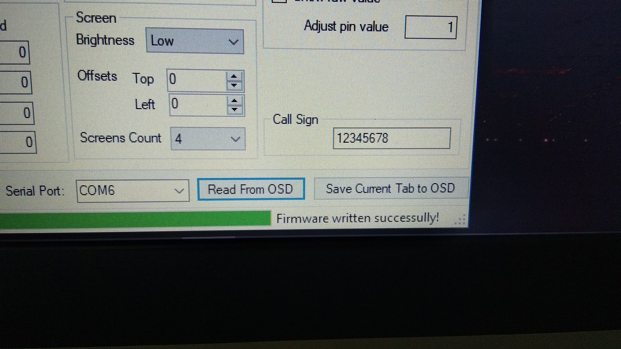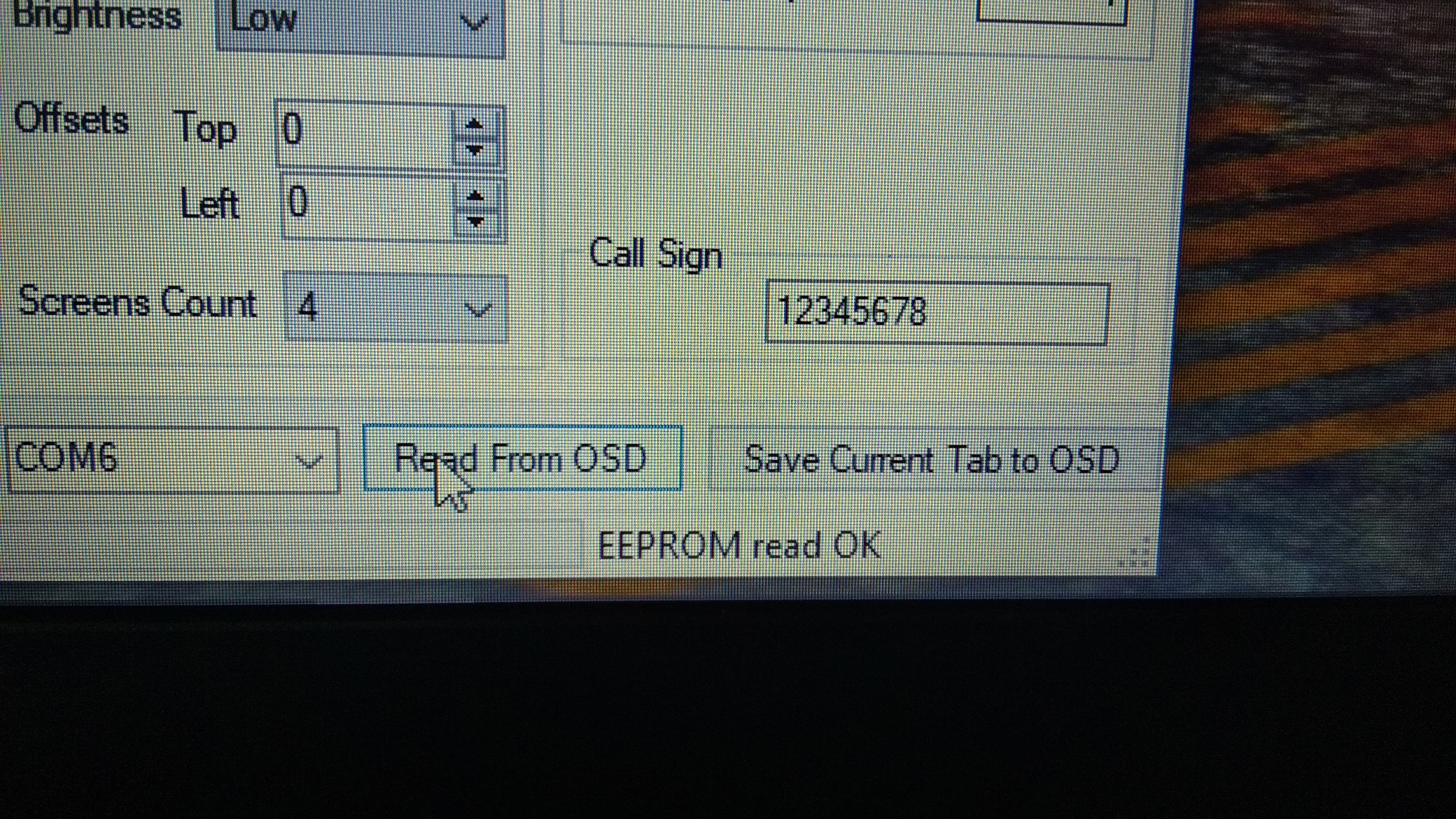 La única salvedad es ir guardando los cambios periódicamenrte oprimiendo el botón Save Current Tab to OSD , y cada vez que salvemos la información debería decirnos Eprom Read OK