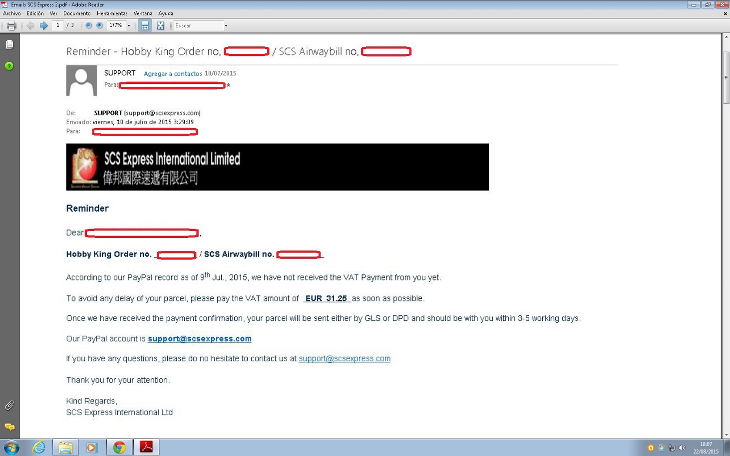 Por lo que te mencionado anteriormente no hay la menor duda de que SCS Express son unos ESTAFADORES, y Hobby King también es coparticipe de dicha estafa, por mirar a otro lado y no llamarles al orden.
