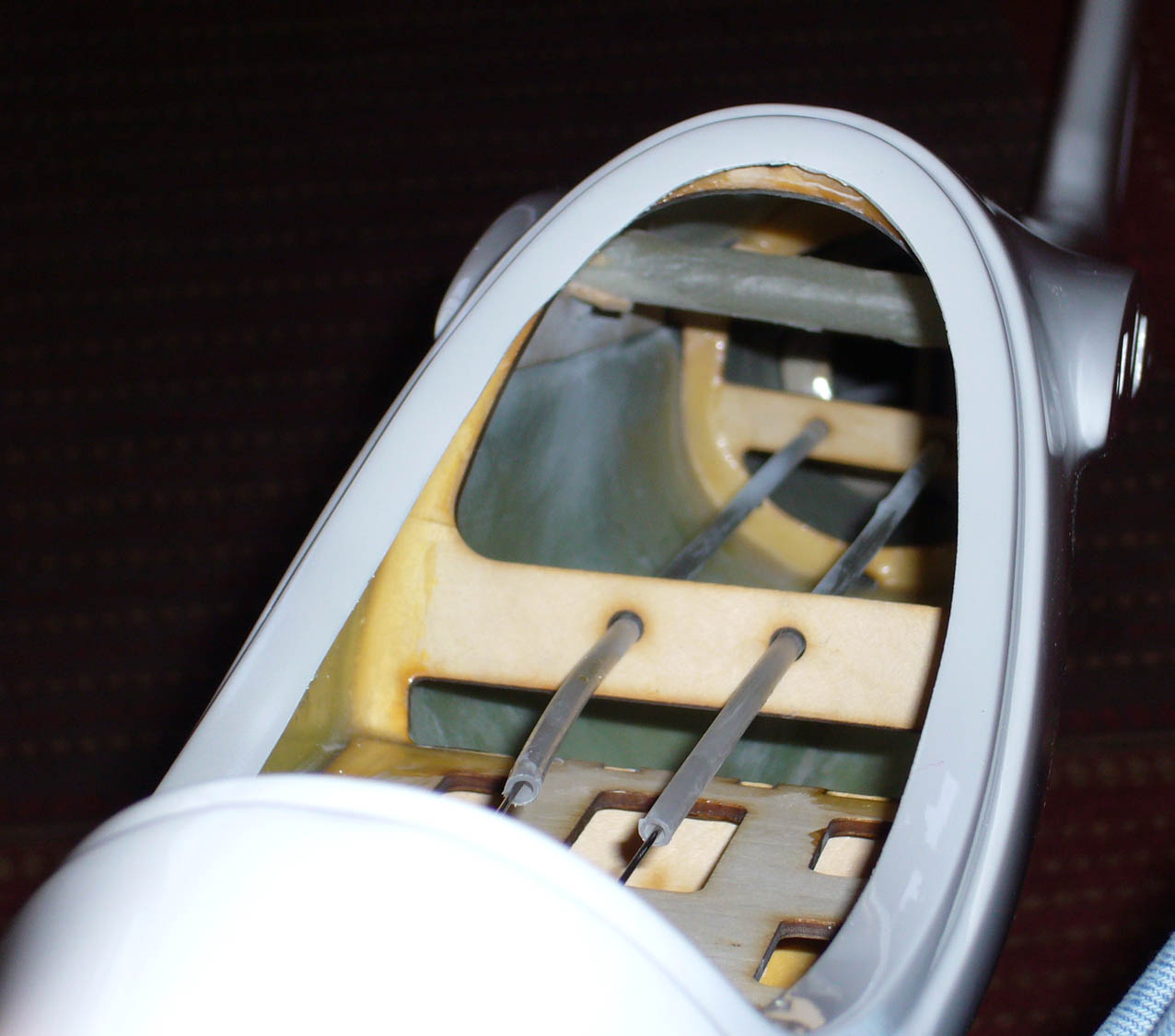 Es lo que hemos echo en mi ventus que venia en versión remolcador y al cortar el morro luego no habia sitio para la lipo , tenia una bandeja casi a ras de la cabina con servos del retractil , cuchillas y deriva, fusilamos todo y pudimos bajarla 2 cm mas abajo, suficiente para poder poner encima de la lipo luego la carlinga con decoración encima de la lipo y no tener que fusilarla.