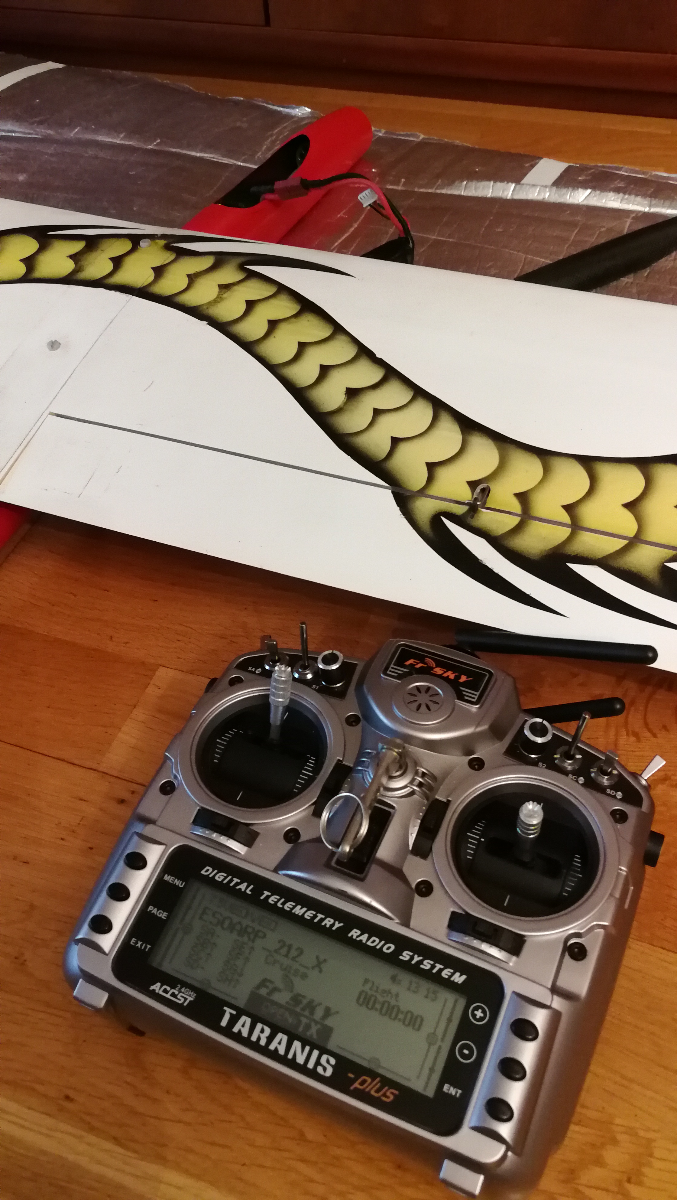 Graduar la compensación de profundidad del freno/buterfly ha sido facilisimo, con el trim del gas, y al final del segundo vuelo ya lo cogi con la mano.