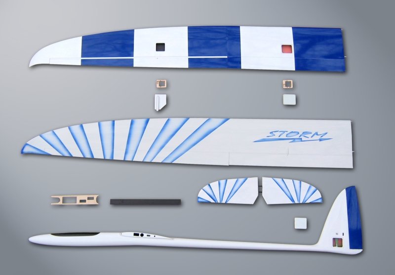 Its excellent flying properties are suitable for all fly tasks for category F3B models. It may be very well used in category F3F as well. The STORM model is interesting for its new construction elements and nice design. It can be supplied in electro version. The model is supplied with floating elevator and V elevator.