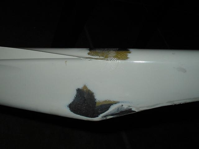 Te preparas epoxi de 5 o 30 minutos o resinita si tienes , pero para esta reparacion con epoxi normal te vale ya que no es una reparación estructural, y le añades muchos microbalontes y si tienes un poco de aerosil, cabosil o simar, es decir un espesante, para que la resina no te escurra aunque si lo haces con epoxi de 5 o 30 minutos no t ehará falta ya que ese tipo de epoxi no descuelga tanto porque es bastante espeso de por si.