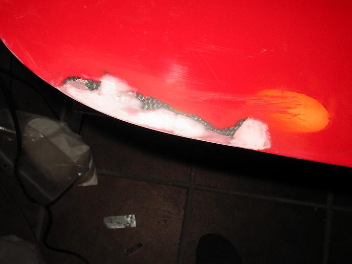 Luego un poquito de masilla de carrocero, pintura y listo.