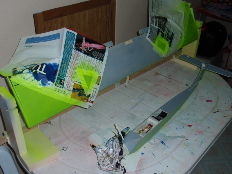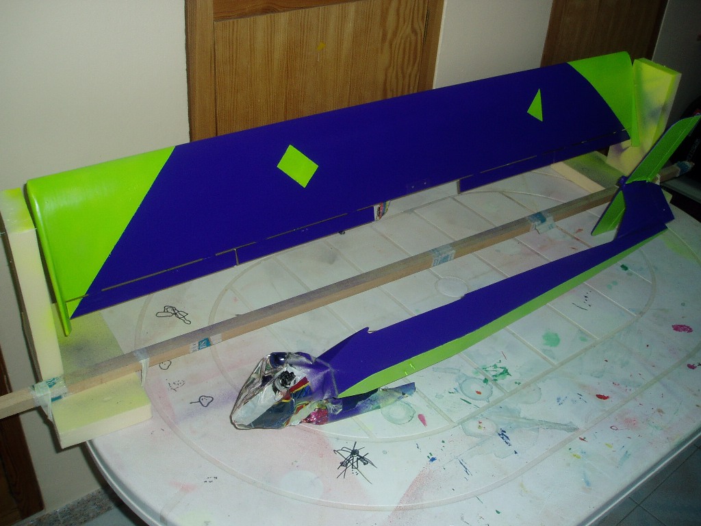 fuselaje y ala en construcción clasica con forro de velo y resina de poliester.