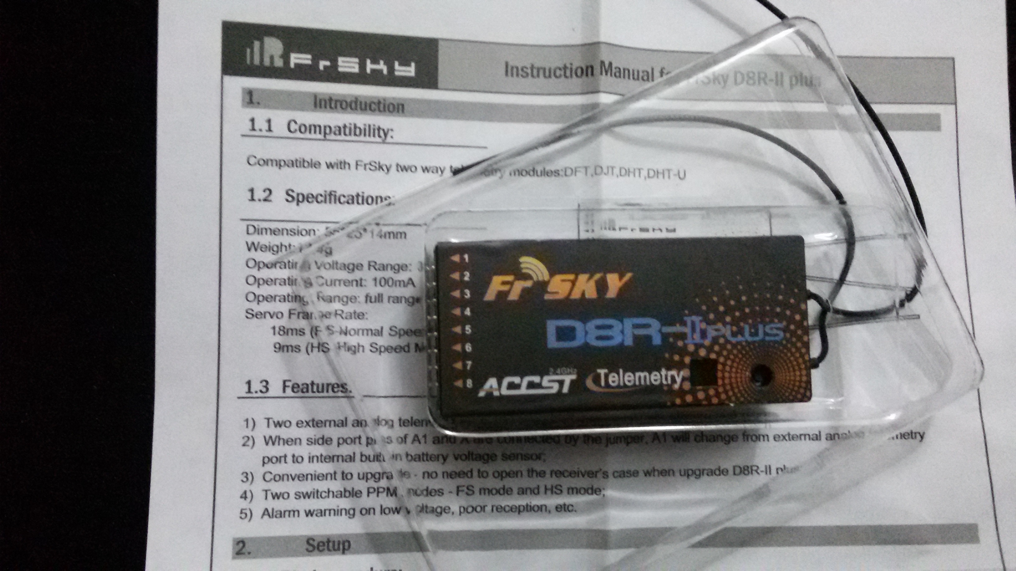 Bueno colegas... ya he conseguido dos componentes fundamentales, módulo FrSky DFT 2.4Ghz. 32€ y receptor D8R II Plus ACCST 33,50€ (adjunto fotos) me he ido hasta RC Innovations (no se si está permitido publicar nombres de tiendas) 🙄 hemos estado hablando un buen rato de todo un poco y me recomendó lo mismo que me habían recomendado aquí en el foro y me comentó además que en su experiencia con aviones, helis y drones no ha notado diferencia entre componentes Futaba y los componentes compatibles de otras marcas asiáticas y que CON TODO BIEN EMPAREJADO es exáctamente lo mismo, eso si... con un equipo 100% Futaba nos olvidamos de cualquier probable mal funcionamiento por incopatibilidad.