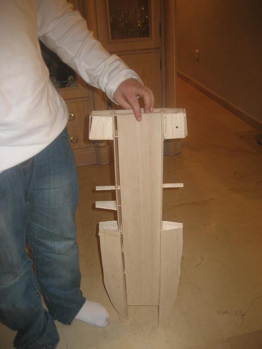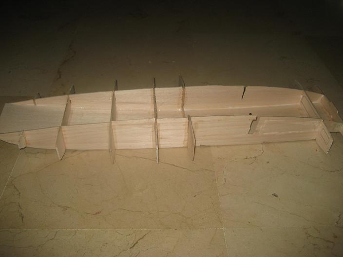 Aun estoy terminando el casco, lo estoy haciendo de madera de balsa y despues lo recubrire con