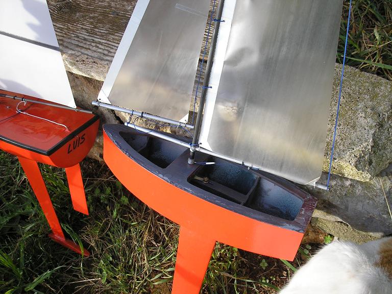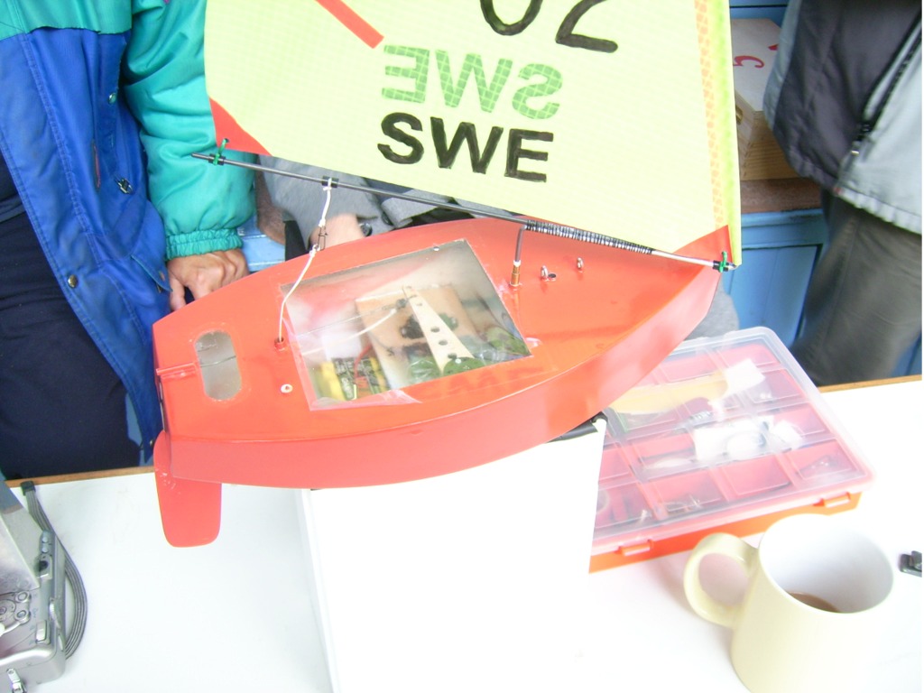 La tuve que hacer inclinada al cambiar el tipo de vela, y así cambiaba le resistencia lateral del mismo y quedaba +/- equilibrado sin modificar la posición del tintero del mástil , pues inicialmente tenia la que ahora tiene el Opalek( son intercambiables entre si, me valen para los dos barquitos), un saludo, Nel.-