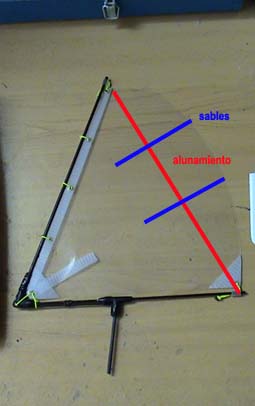 Si Darío ese es el material que podéis encontrar en las papelearías técnicas o copisterías, etc. esta hecha de 2 paños sobre el posicionador que os indicaba en la pagina de Micro Magic España y con una ligera bolsa, pues en esta zona el viento casi siempre suele ser fresquito del Nordeste, la unión de los paños realizada con celo adhesivo de doble cara se encuentra por la raya de abajo, la que esta mas cerca del pujamen. Mirare de poneros alguna foto mas para así apreciar mejor los detalles (lo que me permita mi sencilla cámara).
