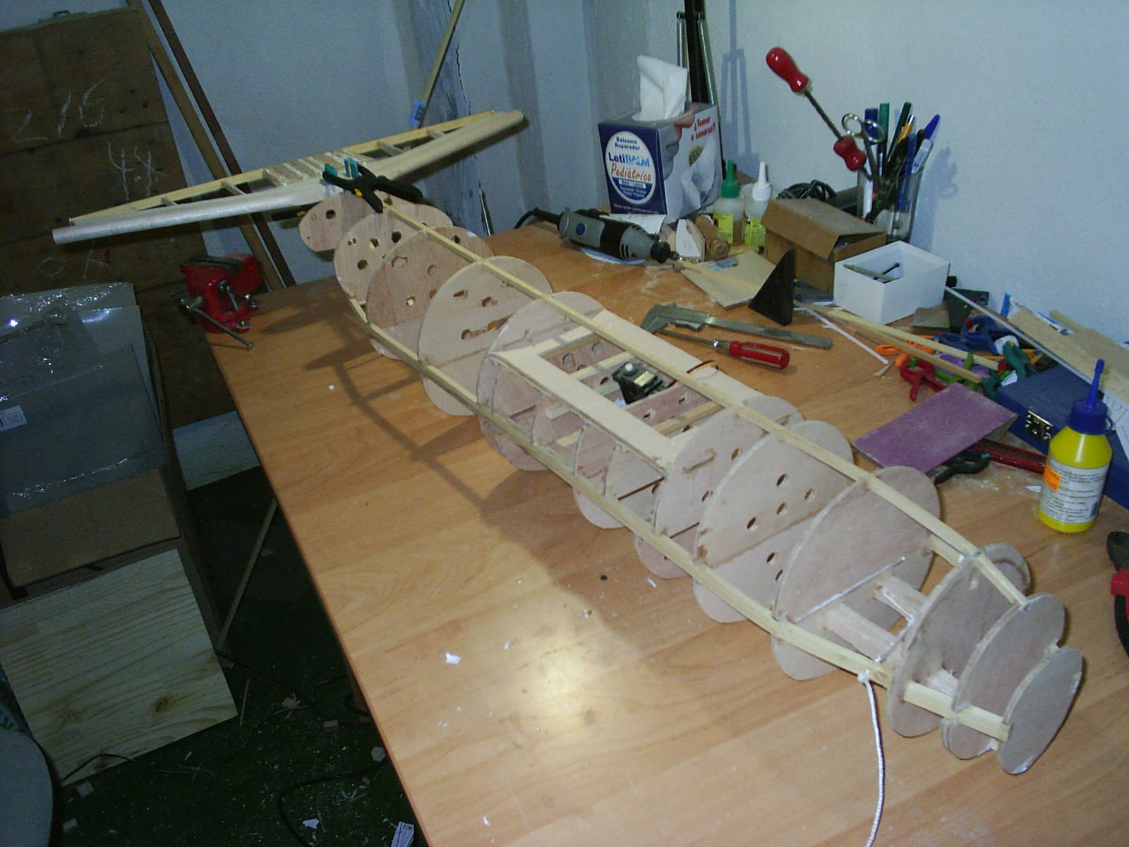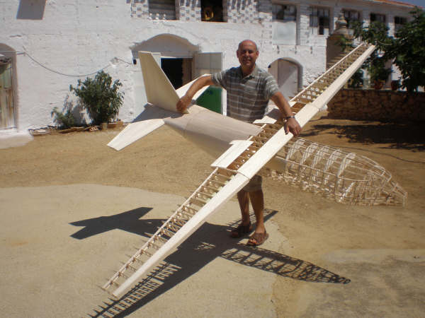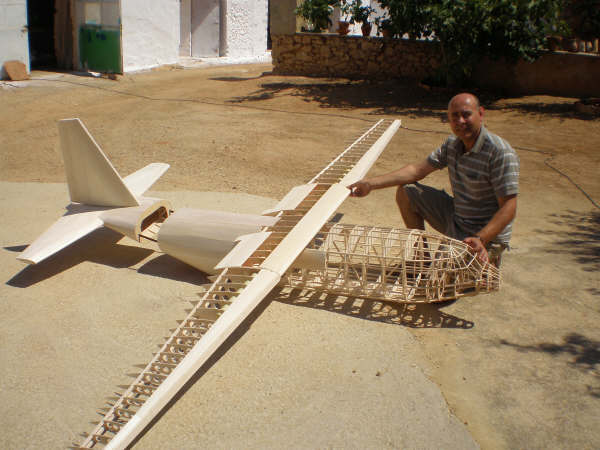 Los datos que puedo adelantar son pocos. La envergadura es de 3500 mm. ya invariable. Motores disponibles son cuatro ó bien de 10 cc. ó de 15 cc. todos en nuestro poder y que decidiremos montar unos u otros en funcion del peso final, todos Glow. Y el peso previsto es alrededor de 12 Kg. y en funcion de esto lo enfibrilaremos ó no. Decidme si pasa algo para el envio de fotos, que tengo disponible, y no soy capaz de enviar. para que veais como esta de adelantado el trabajo.