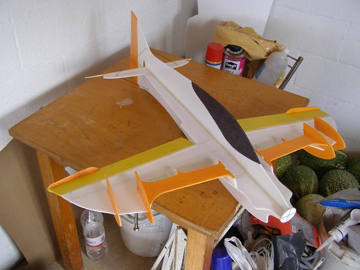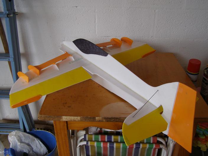 Bueno, pongo una foto para preguntar e ir asegurando datos, que voy a pedir ya todo, la fibra de carbono no tengo nada claro de los grosores que tienen que ser, tambien quiero saber si hay que poner crucetas ademas de las alas en el fuselaje, yo lo voy a hacer para exteriores en EPP de 6mm. La foto creo que la saque de RC Groups, que me disculpe el autor pero no recuerdo de donde la saque.